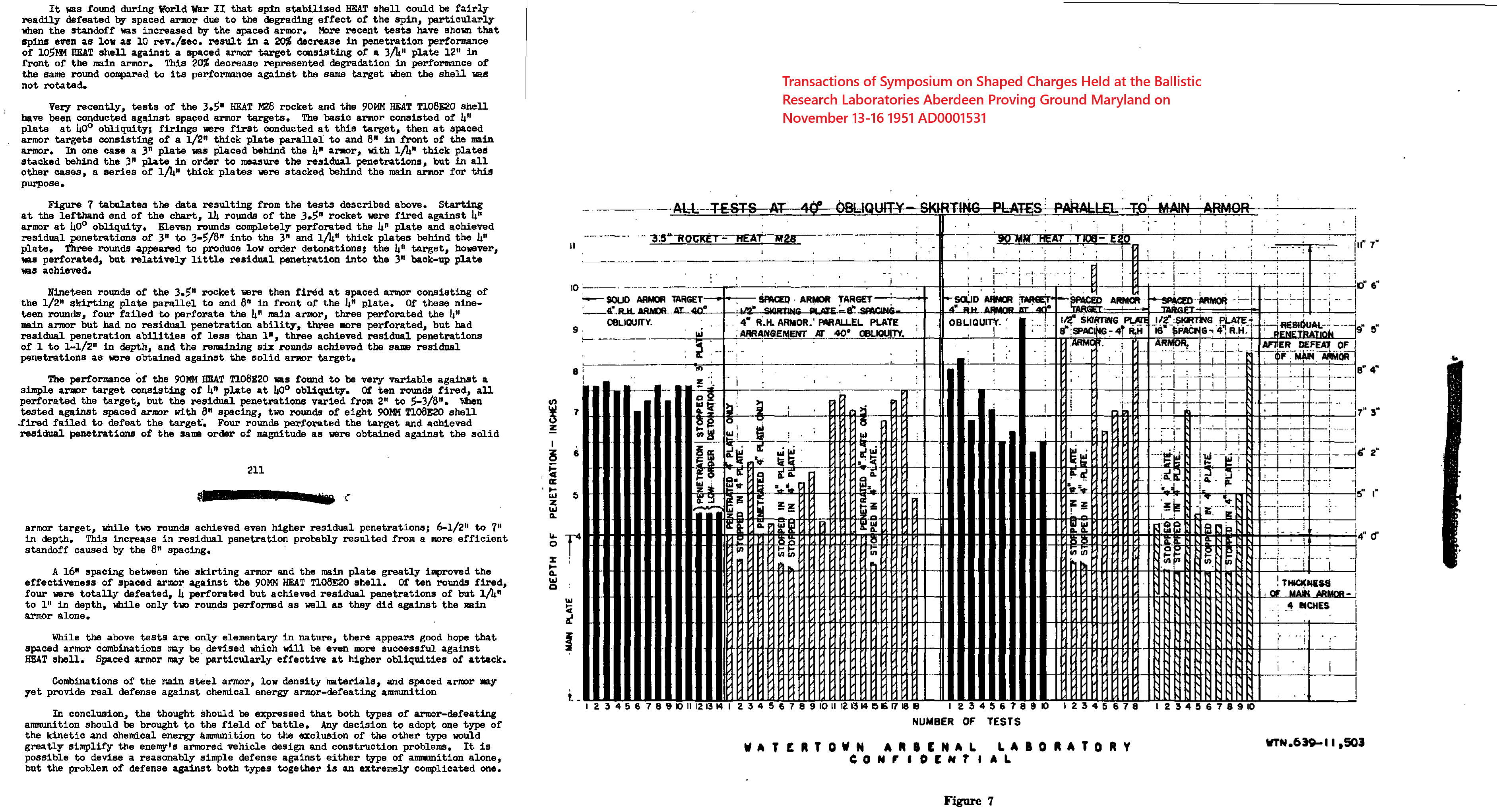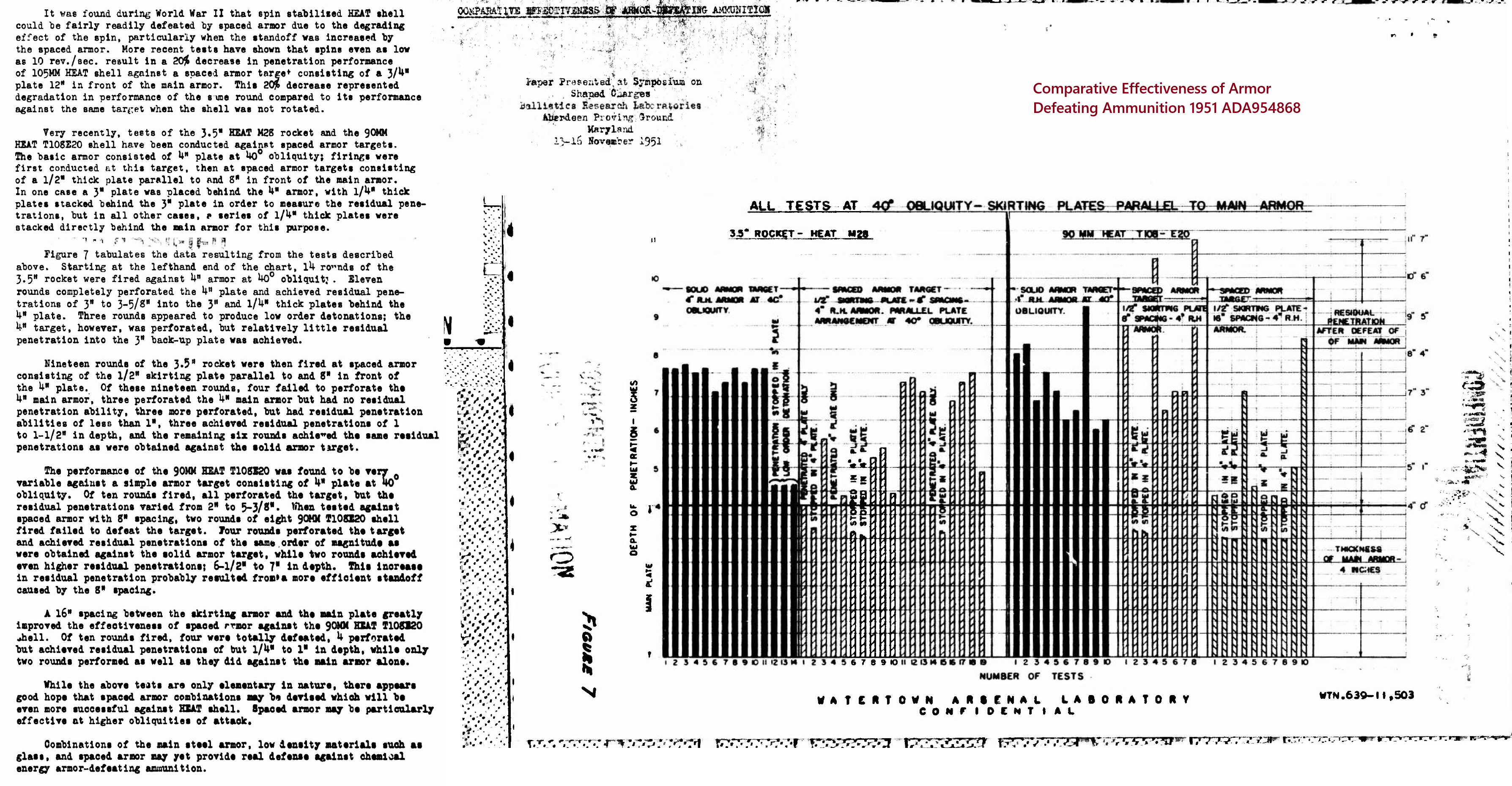 Re-posting the 3.5 inch rocket test against armor since I found a different quality source (Transactions of Symposium on Shaped Charges Held at the Ballistic Research Laboratories, Aberdeen Proving Ground, Maryland on November 13-16 1951 AD0001531). It is part of a much larger (36 articles/reports in total) 407 page pdf that is all about shaped charges. Highly recommend this for anyone that wants to read more about the US post world war 2 development of shaped charges.