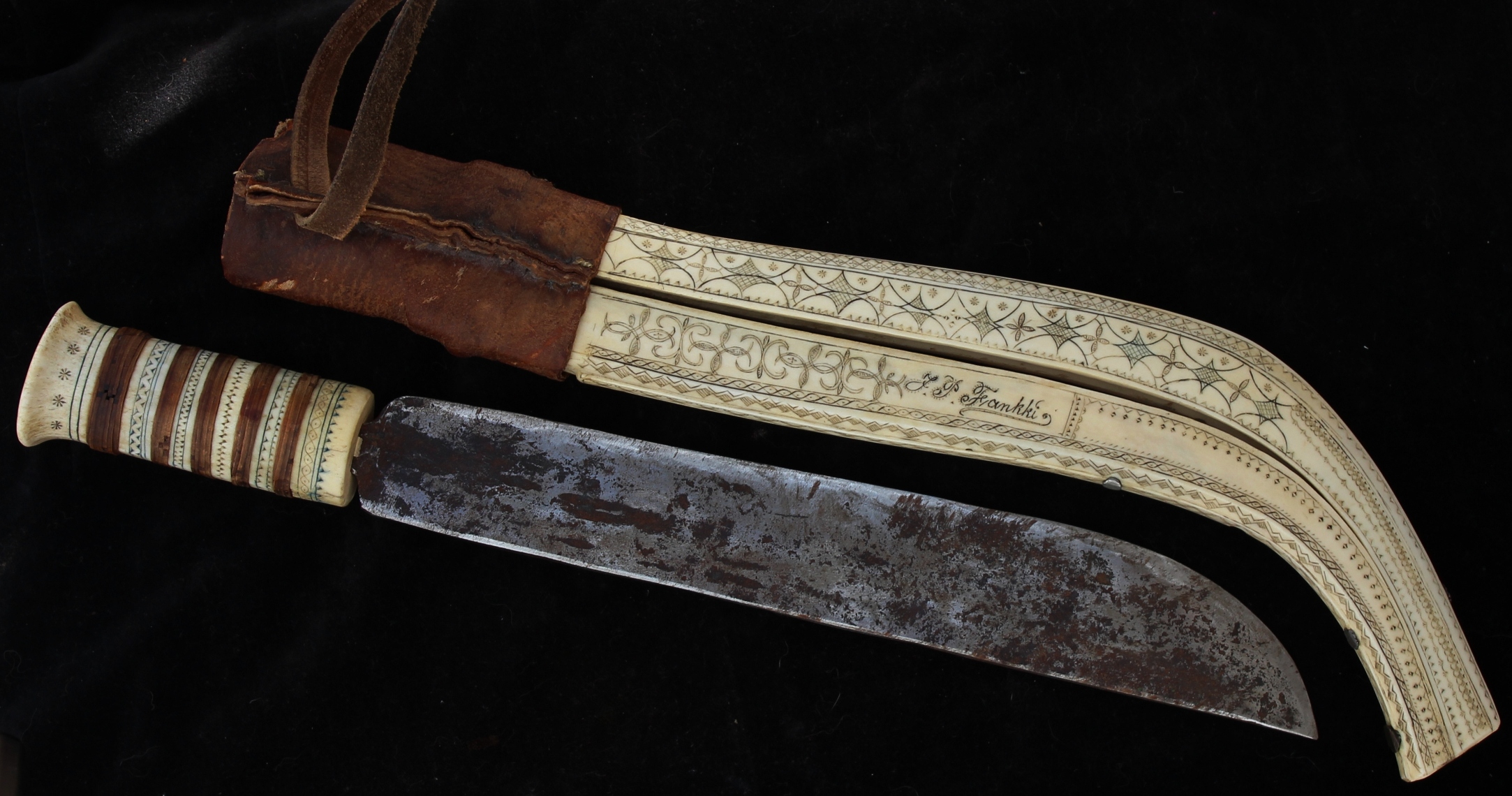 Good gallery on puukkos made entirely for championships.https://puukkoseura.fi/galleria/>>65100092Factory made stuff is uniform.Handmade stuff changes alot.I MOSTLY have a drop point on what ive made, entirely so that gutting and skinning a moose is simpler and you dont need a gut hook for the belly and legs.A drop point is easier to cup in your hand and a drop point doesnt dig into the bone of a leg when skinning it.Ive only made a clip point blades that are thicker.>>65099531Fun fact, if the top end of a leuku seems to be carved hollow, theres usually a bead of loose bone inside to cause rattling noise.Something something the believes of sami about bad spirits and such. Also works like a bear bell. There was a smith who produced Leukus like that in the 90s and early 2000s, maybe even into 2010s, and the pricetag was around 1500 euros. Taisto Kuortti had one(blacksmithing teacher here) which he showed our class he brought a briefcase full of knives and said if someone was to offer 15 000 for all of them he would have to consider taking that offer.Heres one from a few months ago.