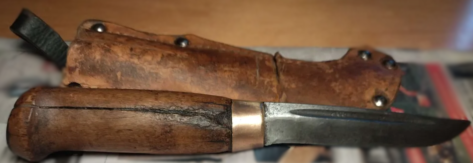 >>65099774>Funny that there used to be more variety in puukkos like the fuller and clip point shown hereAgreed. I really like this cheap (with ersatzleather) one from the 40's (or 50's). It feels good in the hand, i sharpened it and it does what a knife needs to do.