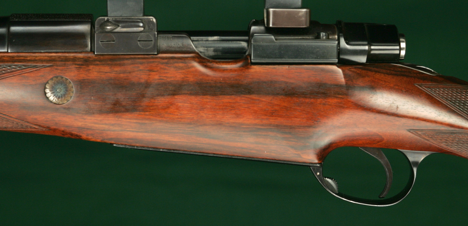 >>65102781>.375 H&H is prolific in Africa, can be loaded very versatilely, and is the legal minimum for big game in a lot of African countries >drop box magazine profile, pic rel8d>express sights >ebony forend tip > high lpi checkering w/ fleur de lis borders>cartridge trap on the toeline of the stock>leathered rubber buttpad>double beaded pancake cheekpiece>controlled feed action of some kind w/ integral claw scope bases >set trigger>model 70 style 3-pos safety>glass bedding>rust blued finish