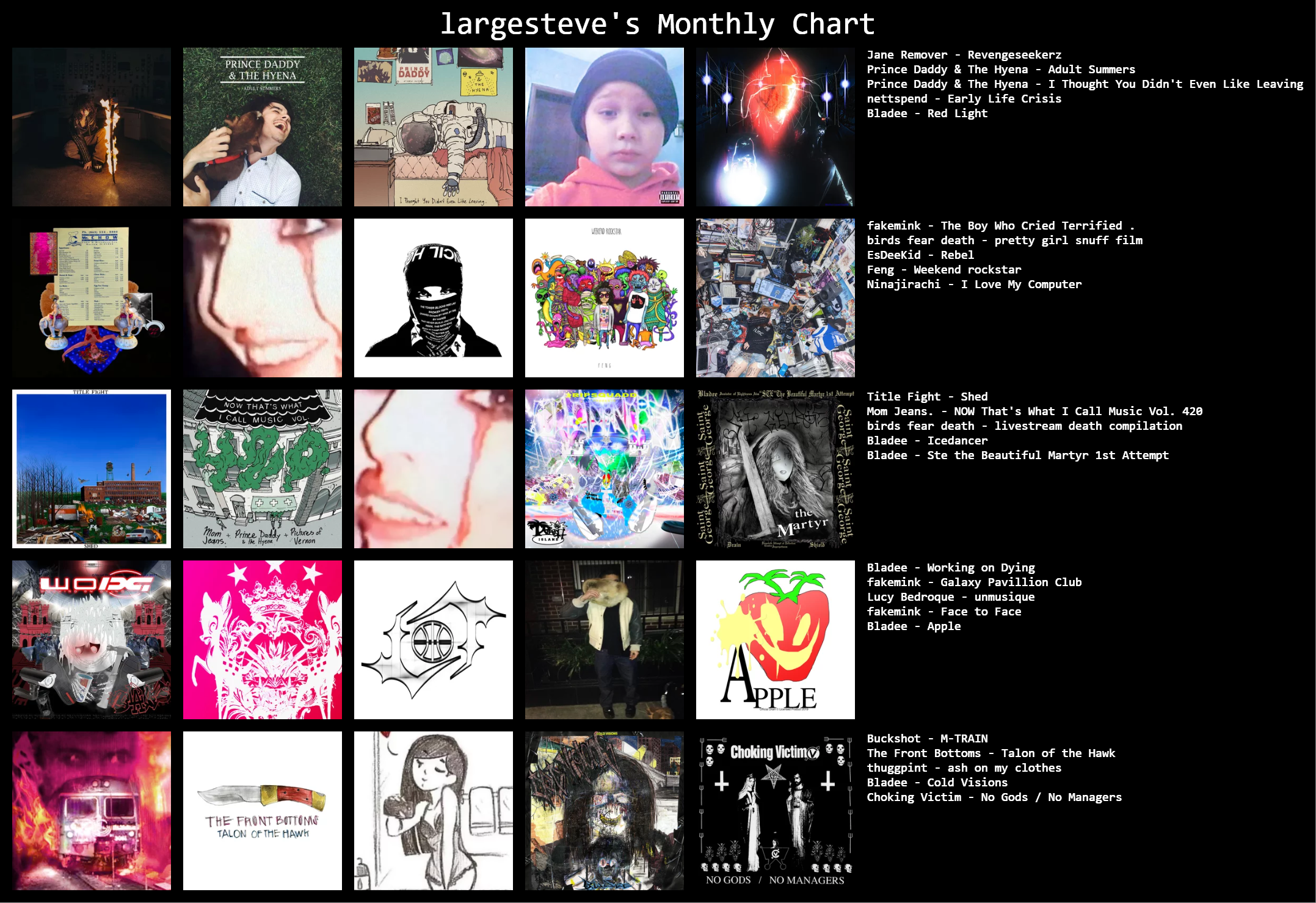 i’m bored let’s post topsters and talk about what we listen to, here’s mine.>QOTT: What album have you listened to most recently?I am currently listening to D Sides by Gorillaz, so good