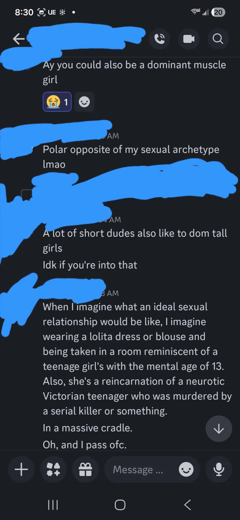 >>42384808im a trans girl and when i'm lonely and i'm sad (today) i sometimes fantasize about being in a ddlg relationship. and it makes me feel sick, and awful, and disgusting, and i know everyone says it's this terrible evil thing and everyone hates it. and i understand why. but sometimes imagining it helps me calm down. i just want to feel small and taken care of and loved i feel like it's this terrible part of me that just won't go away no matter what.
