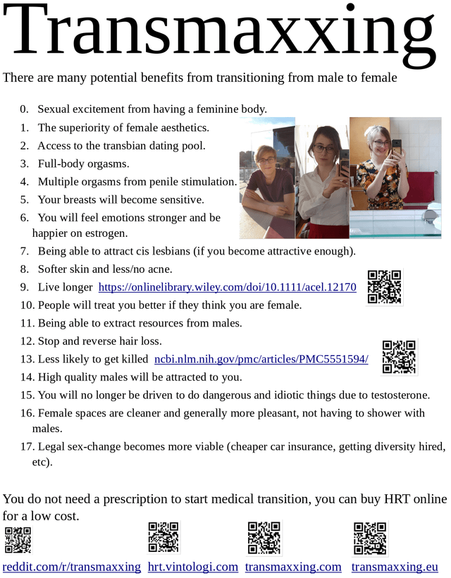 >>42313227after you've been through puberty it's just down to bones, either you have a frame/skull that'll make it with feminine fat distribution from hrt or you don'tthere's not really a reliable way to say you will or won't make it because of age>>42313249>is it possible to at least still manmode and blend into society without looking like a trannyit is, at 19 worst case unless you're insanely fucked you end up some twink hon, binders or loose clothing work for breasts since most trannies never really develop large ones, especially if you don't put on weight