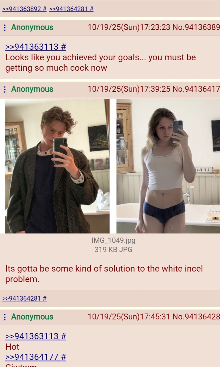 >>42316428It's very rare that a man can be a very hot woman, without ffs and stuffSo do you look nicer now not as an incelAlso just approach lesbians and not straight women