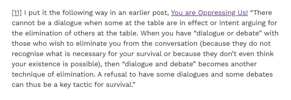 Give them nothing.[Source: https://feministkilljoys.com/2021/10/31/gender-critical-gender-conservative/#_edn11]