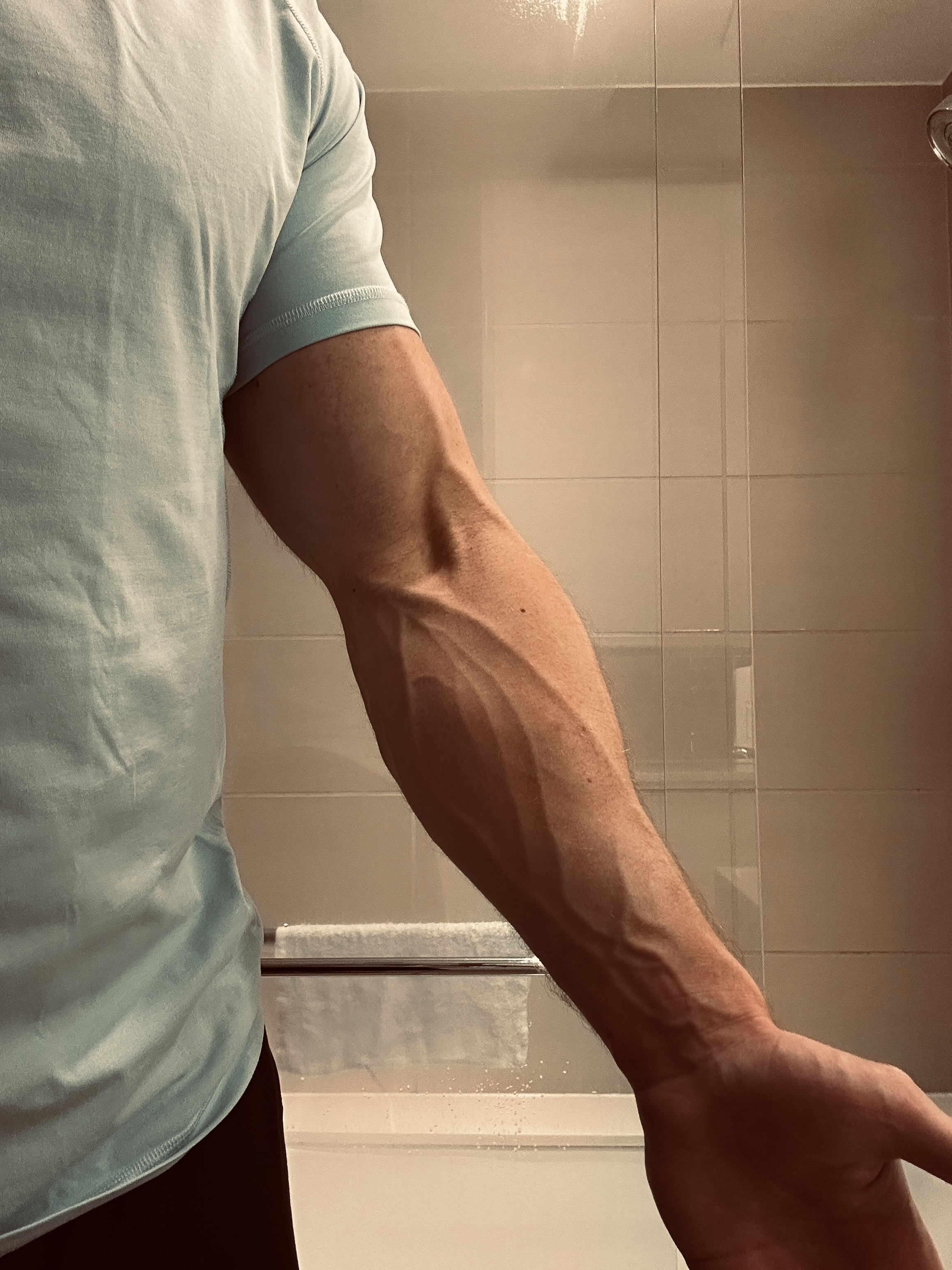 >>43216340Yeah, I take a TRT-level dose, about 1/3rd of what /fit/ would consider to be a proper cycle. For whatever it’s worth, this much muscle is definitely achievable natty if you don’t mind carrying more fat than me.As far as forearms, I don’t train them specifically. But I do a lot of heavy compound lifts, including pull exercises that necessarily work forearms. E.g., heavy pullups, rows, deadlifts, shrugs, etc.