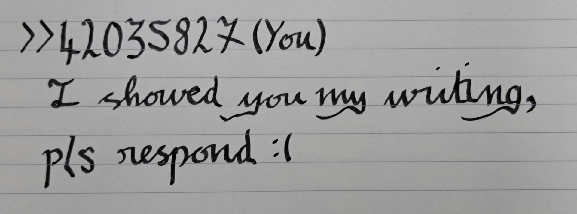 I'm only now realising how tender it is to see people's handwriting in a place I'm so used to just seeing every post in the same font. It's actually really cute seeing how different we all are in little ways.