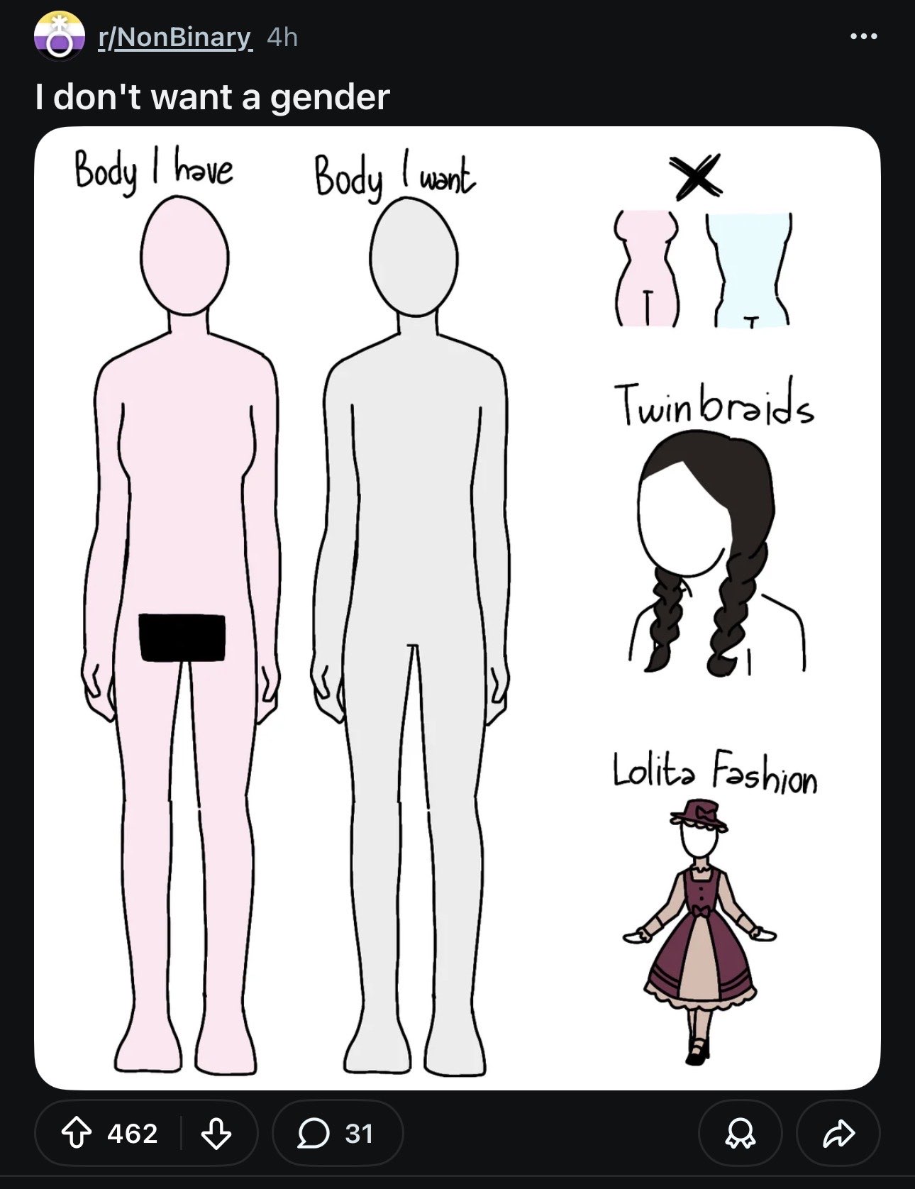 >>42307955>thread based around people unhappy to be a certain gender are fixated on the worst parts of that genderI wonder, anon...