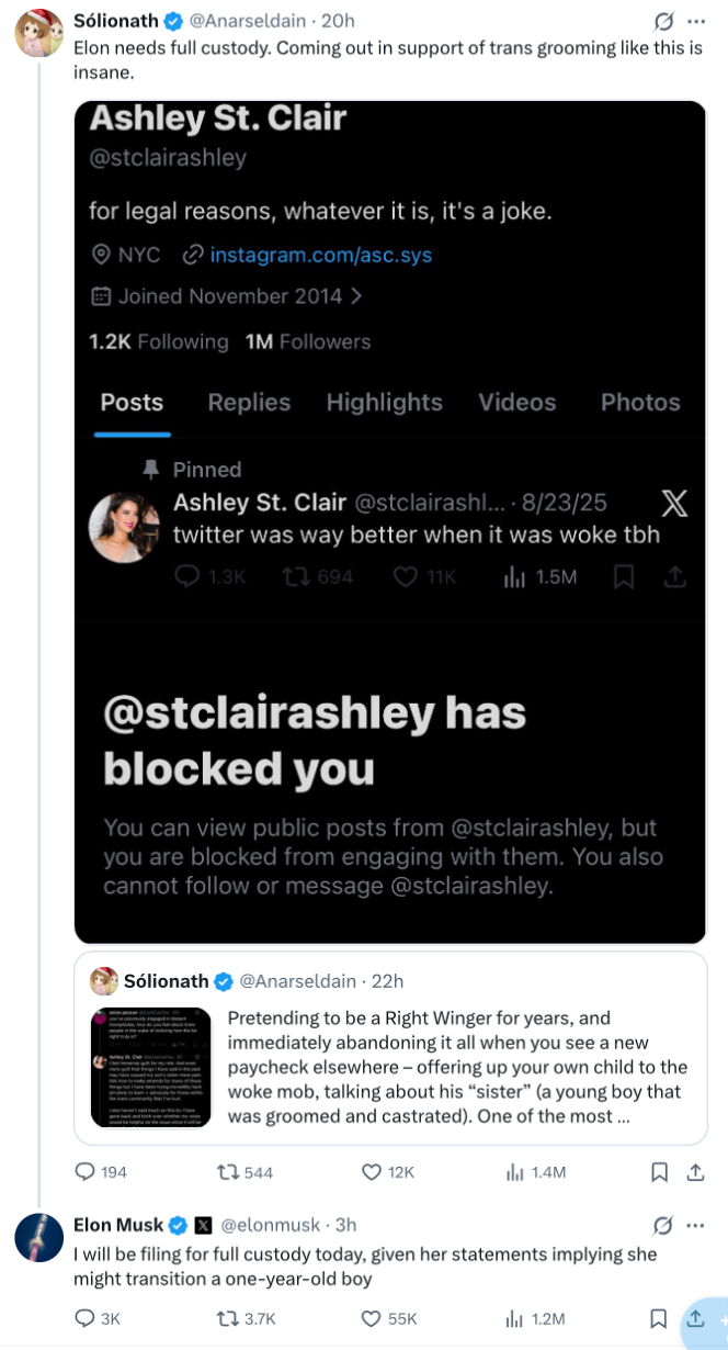 Elon Musk announces he will sue away the parental rights of his ex after she espoused trans ideology