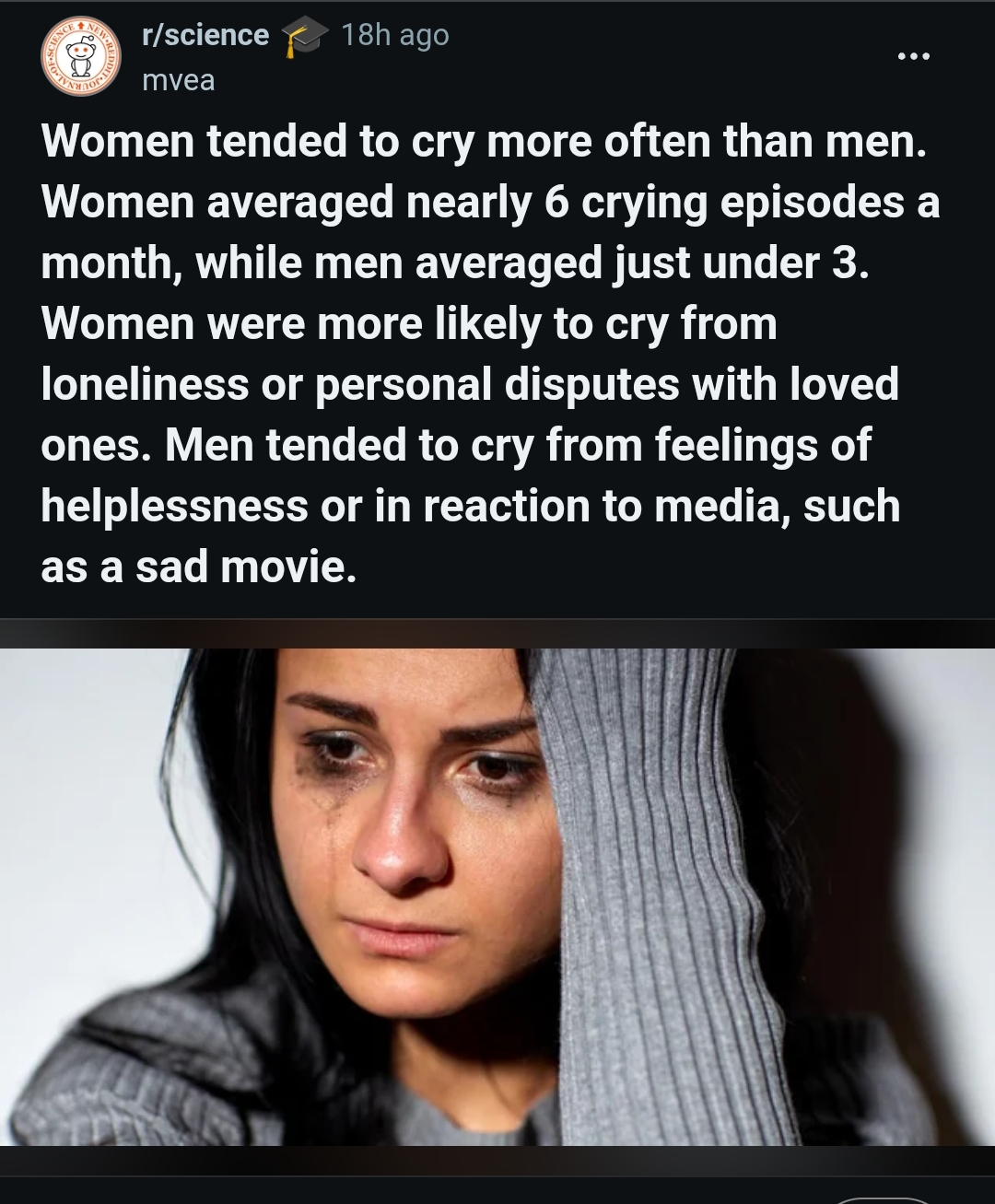 >>43101026there's no way people average at crying 3 or 6 times a month. no fucking way. i cry like a baby (mentally ill) and most people do not fucking cry. this is just them being dumb, like 'yeah i do this for an hour a day' and it's like 30 mins on weekends. they probably consider being upset crying, plus not like they count it. polls never give accurate results, ever. most ppl will just say shit i think