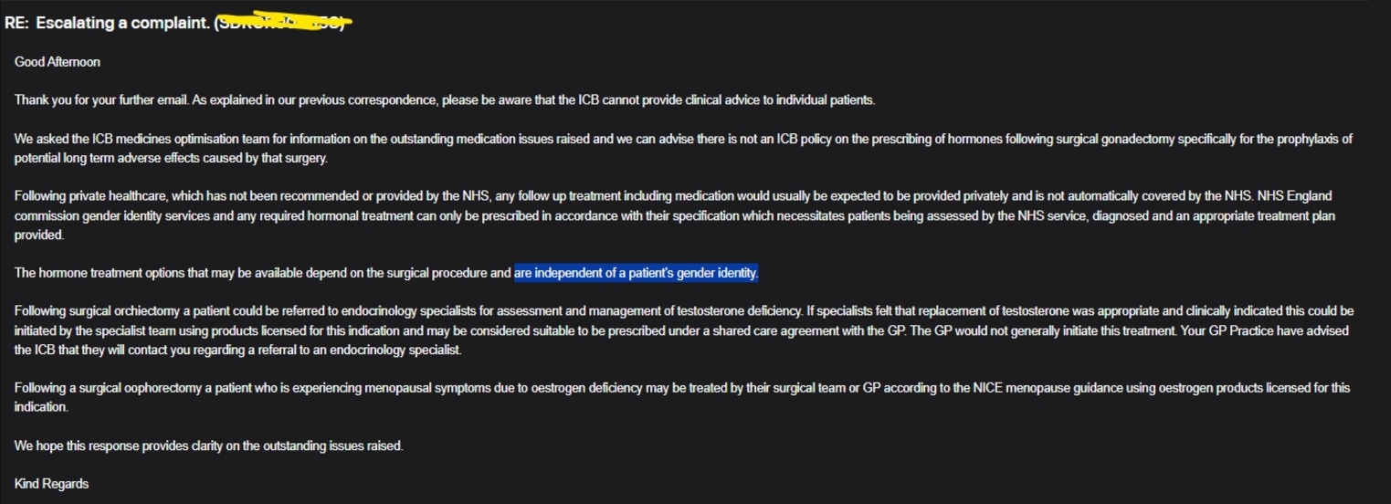 >sorry, providing estrogen is complicated and dangerous>but we can prescribe testosterone