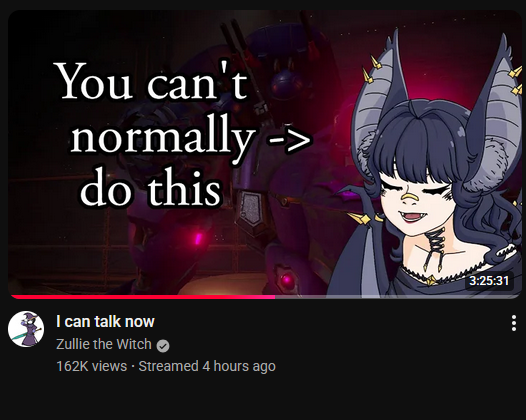 >>42011220She made videos on lore and technical aspects of the games, not gameplay vids.