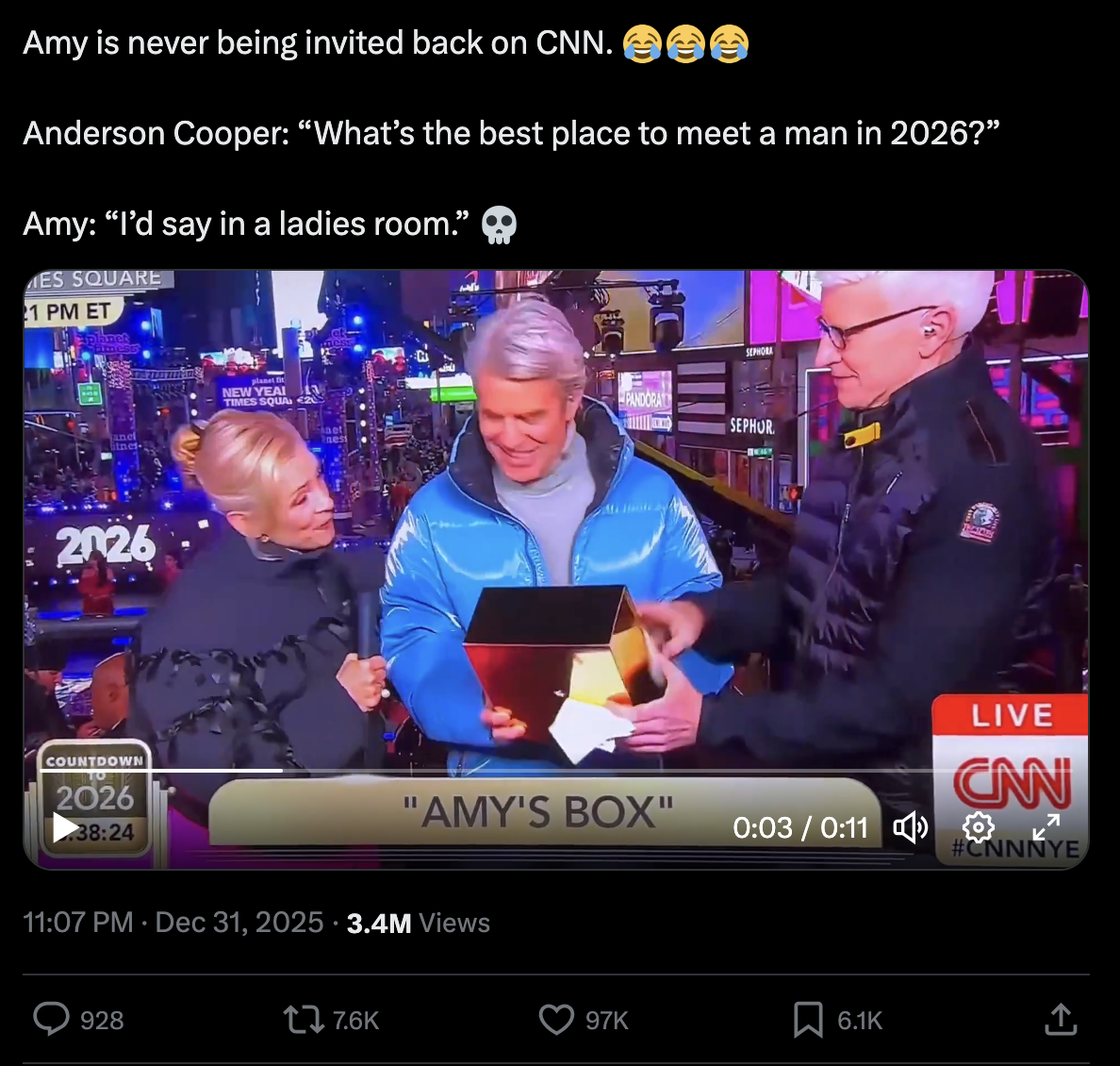 I love that its still open season for mocking trannies and everyone, everywhere is openly laughing at you. No one needs to pretend to coddle your insanity.Happy 2026dont rape any kids