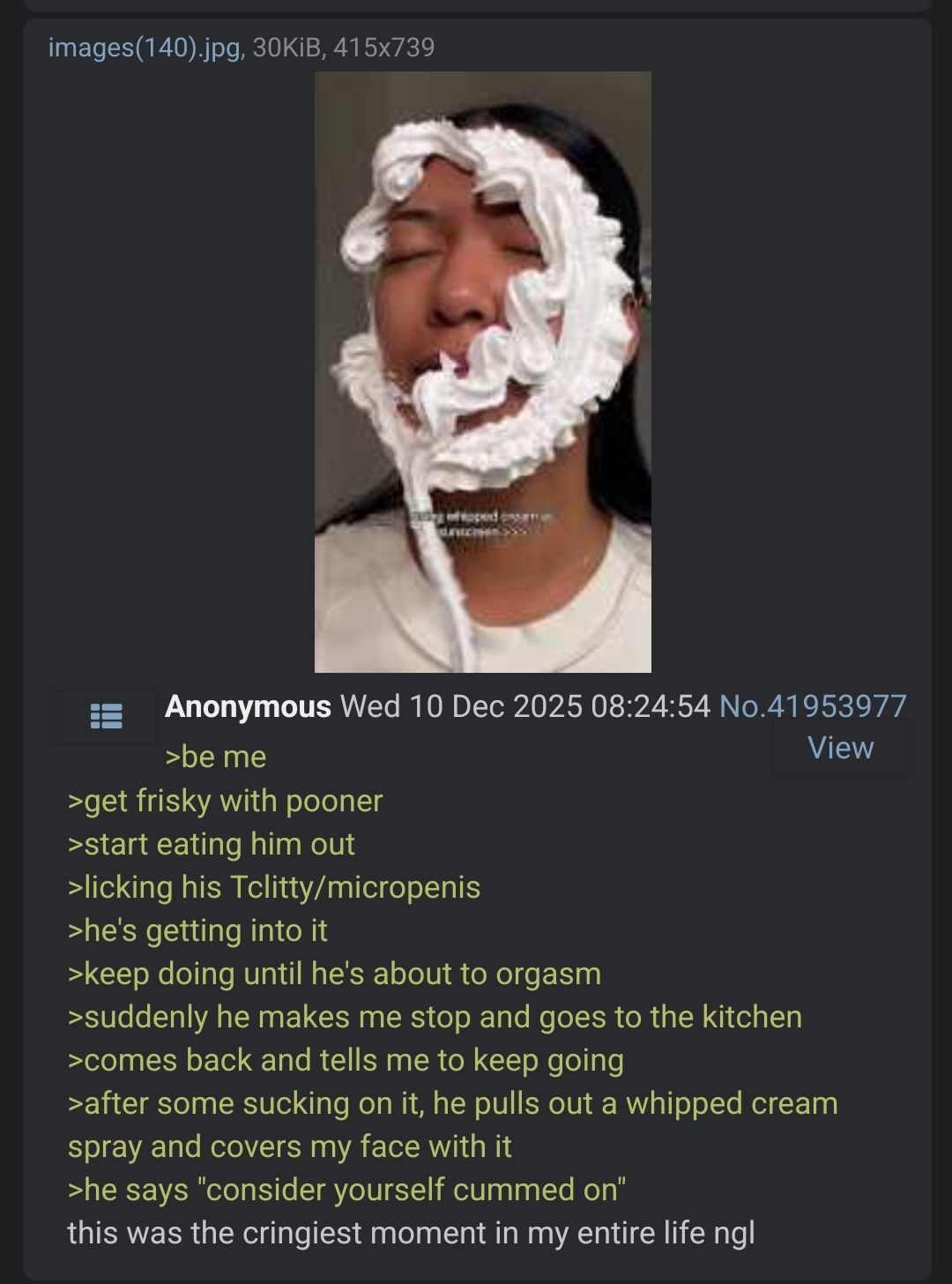 >>42314174coomsider coomself coomed on *slaps tgirls face with lotion*