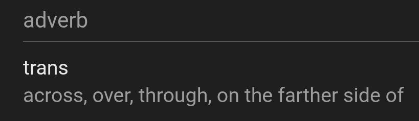 >>42200180>therefore trans women are women who are trans, no?Trans women are people who are across from women in the gender spectrum/binary