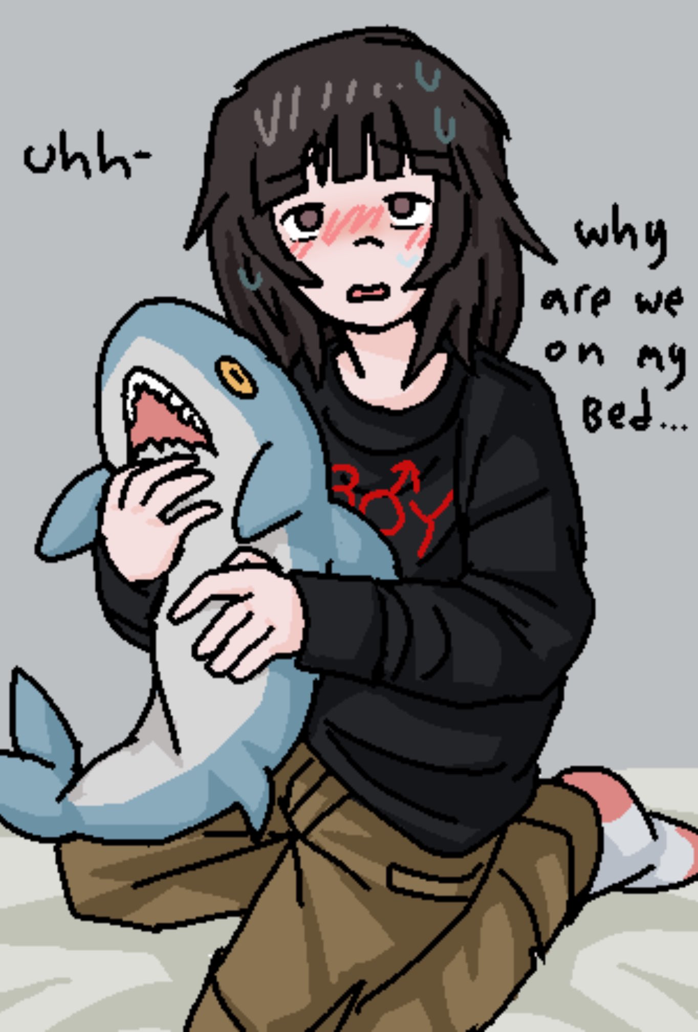 i bought my gf walmart's 4 foot shark plush. she didn't want a blahaj because of the tranny association which imo is dumb but whatever. she's crocheting it a cowboy hat.