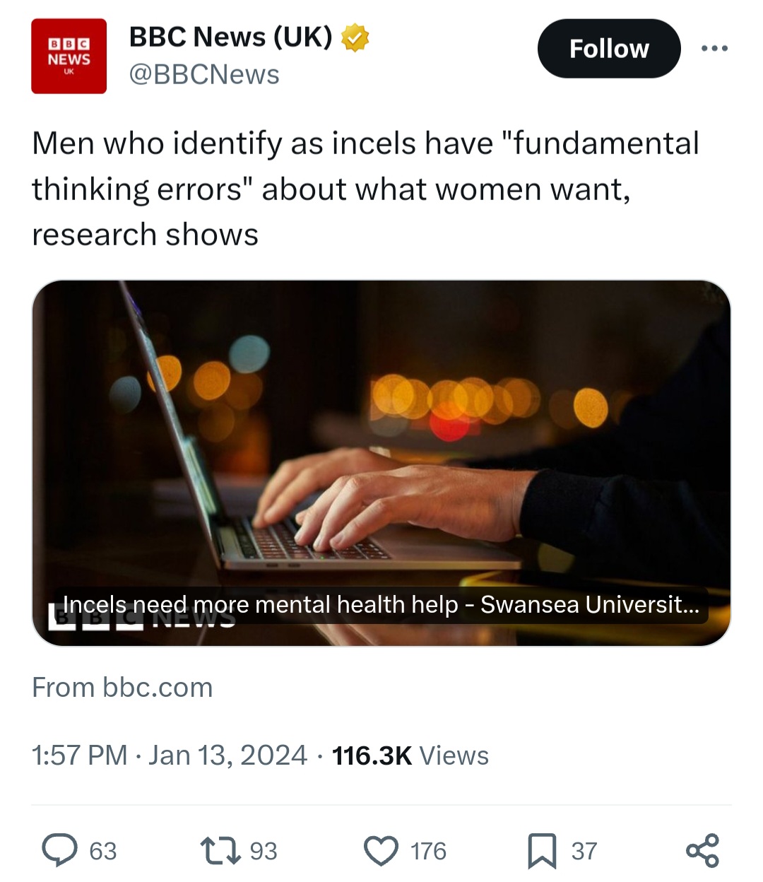 >>42238154>Incels need more mental health helpt. me c. 2003>Incels need more mental health help t. "the news" c. 2026Women want a pat on the back for being too dumb to live it seems like.