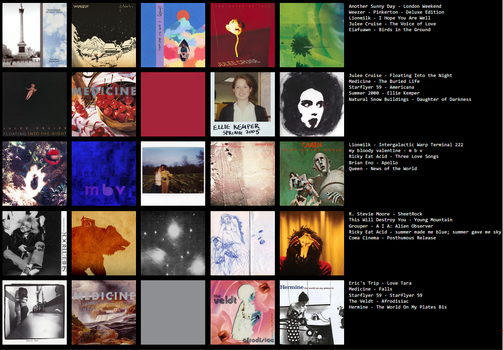 >>42200912cool stuff +chet baker>>42201106+grouper+sprain>>42214591++i hate myself++elliott smith even tho figure 8 isnt my favorite++suis la lune +daniel johnston+kind of like splittingprob my fav chart on here very awesum and cool