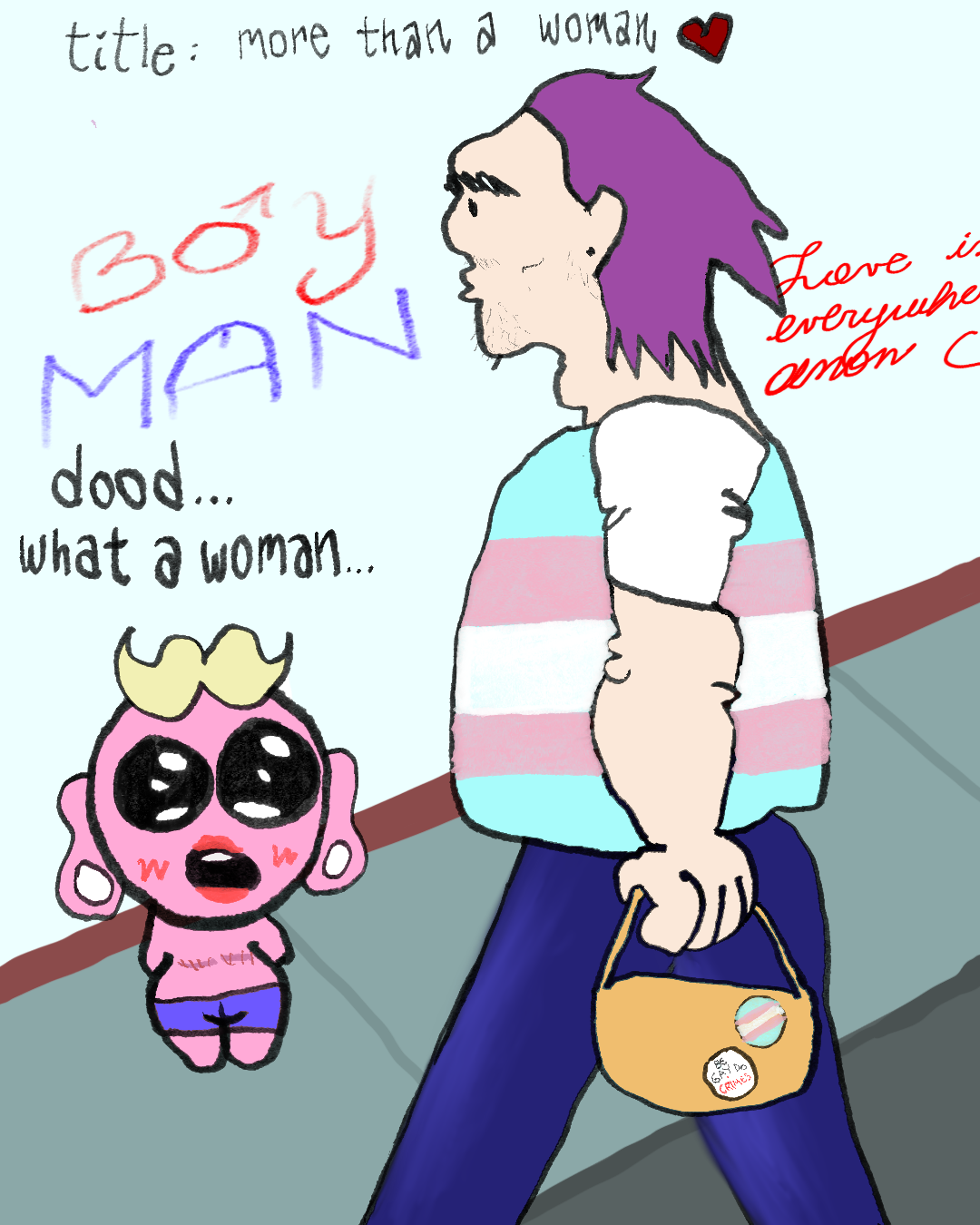 I only see trans fems and trans women and idk, I'm a trans guy who wants to post here sometimes but I'm fucking scared dude. I don't wanna be like judged by trans girls for posting here or something.
