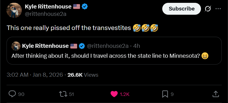 We need to talk about us being a quick and easy rhetorical tool for chudpublicans. We didn't even do anything in this situation and this chuddie murderer hero is invoking us to score easy points. A couple of years ago you would get banned and fined for talking like this. What happened?