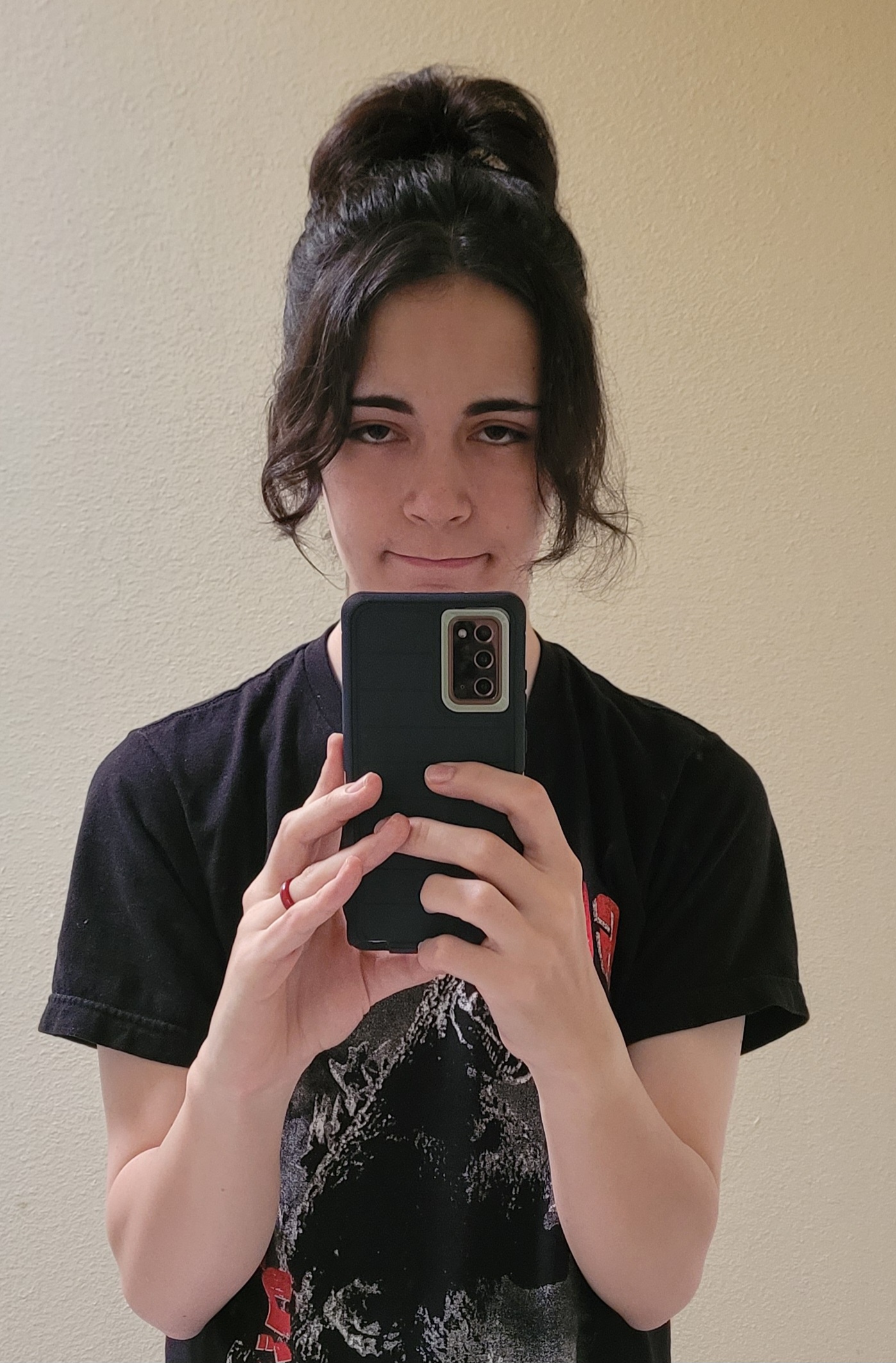 >>43096065way too much bangs hanging down and the bun needs to be tighter