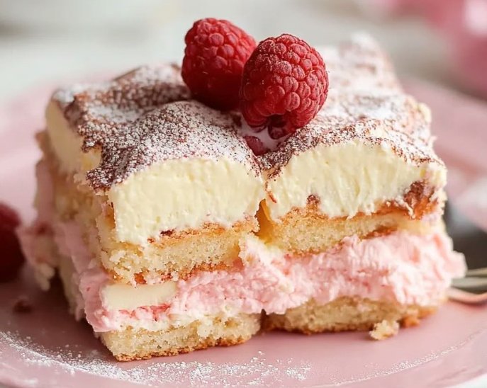Wow look at this dessert It's white chocolate and raspberry tiramisu!