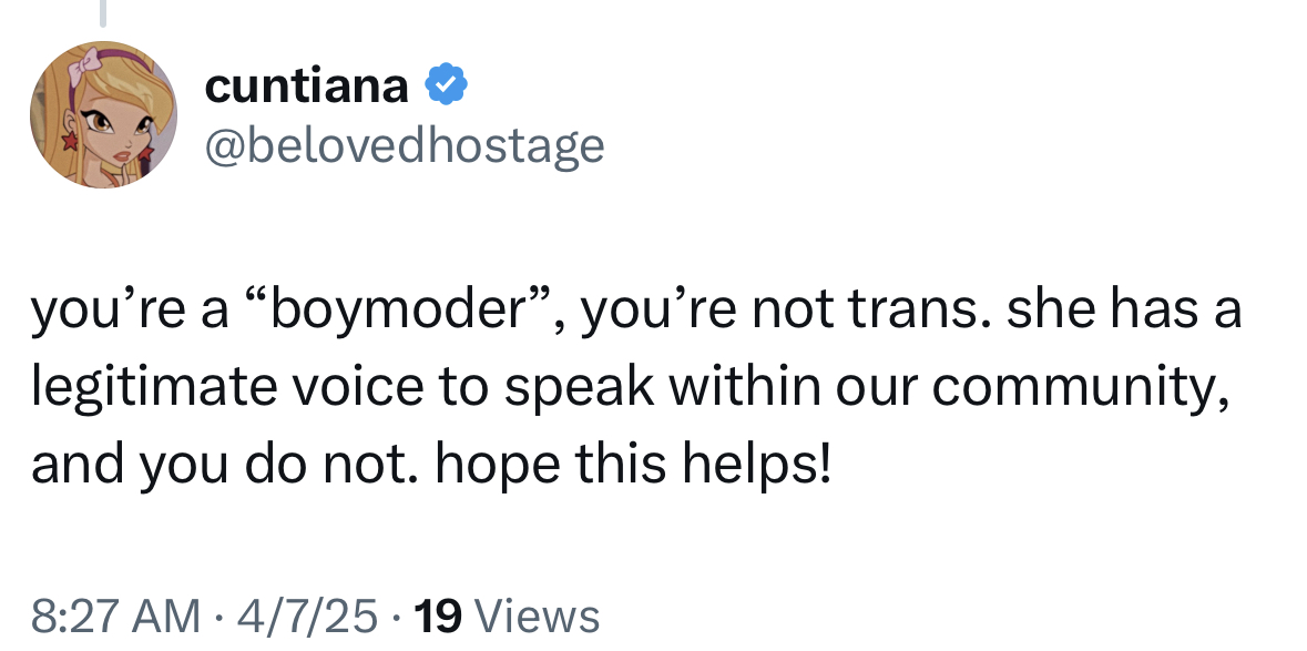 >noooo you cant wear hoodies and jeans like cis girls do, you have to dress like a crossdresser to be validlol