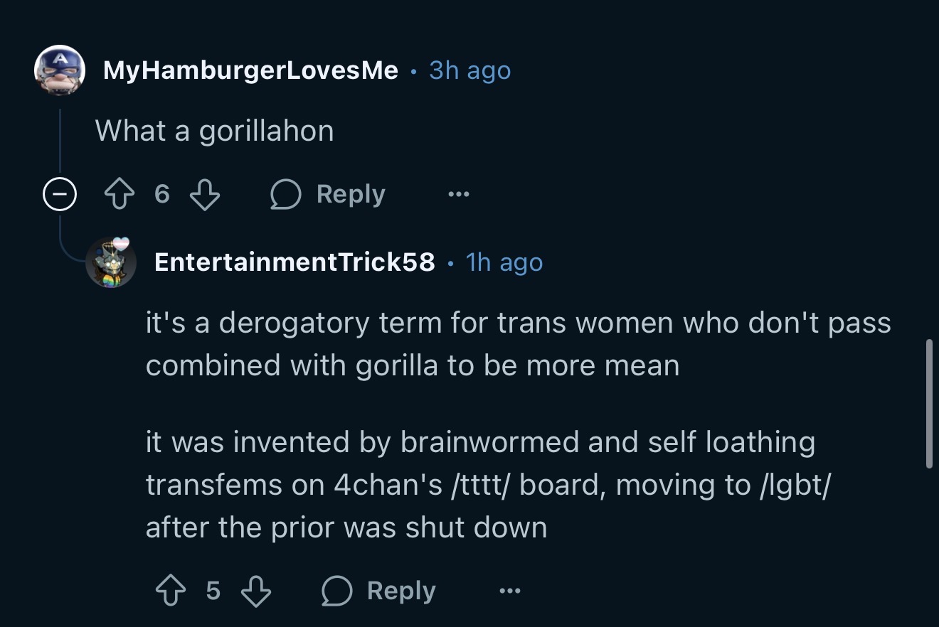 If you faggots are going to reply to them can you at least tell him a gorillahon is EntertainmentTrick58
