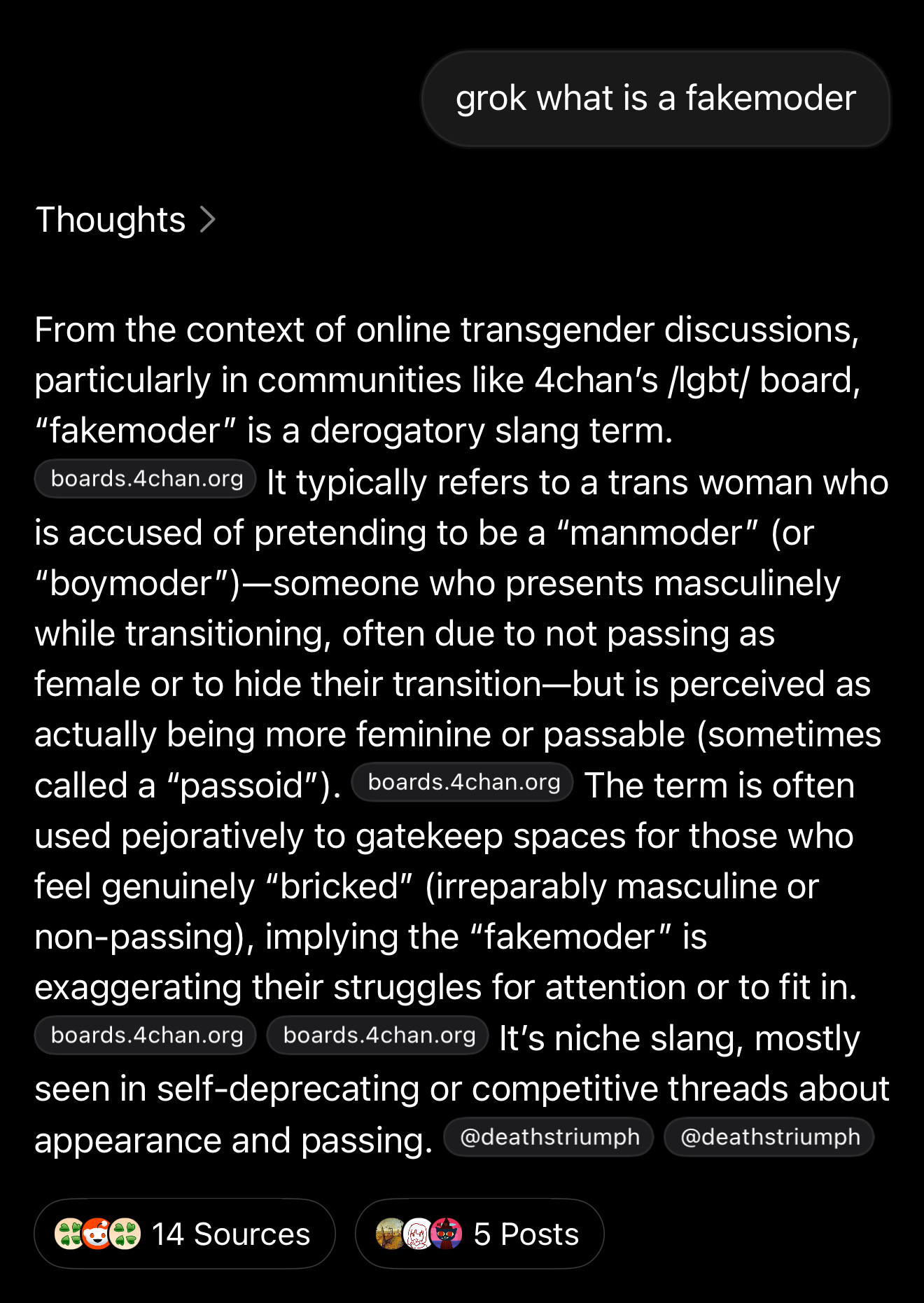 >>41390103people here hate themselves so they lash out at anyone who doesn't completely pass. I'm one of them too, fuck that bitch grrr >:(