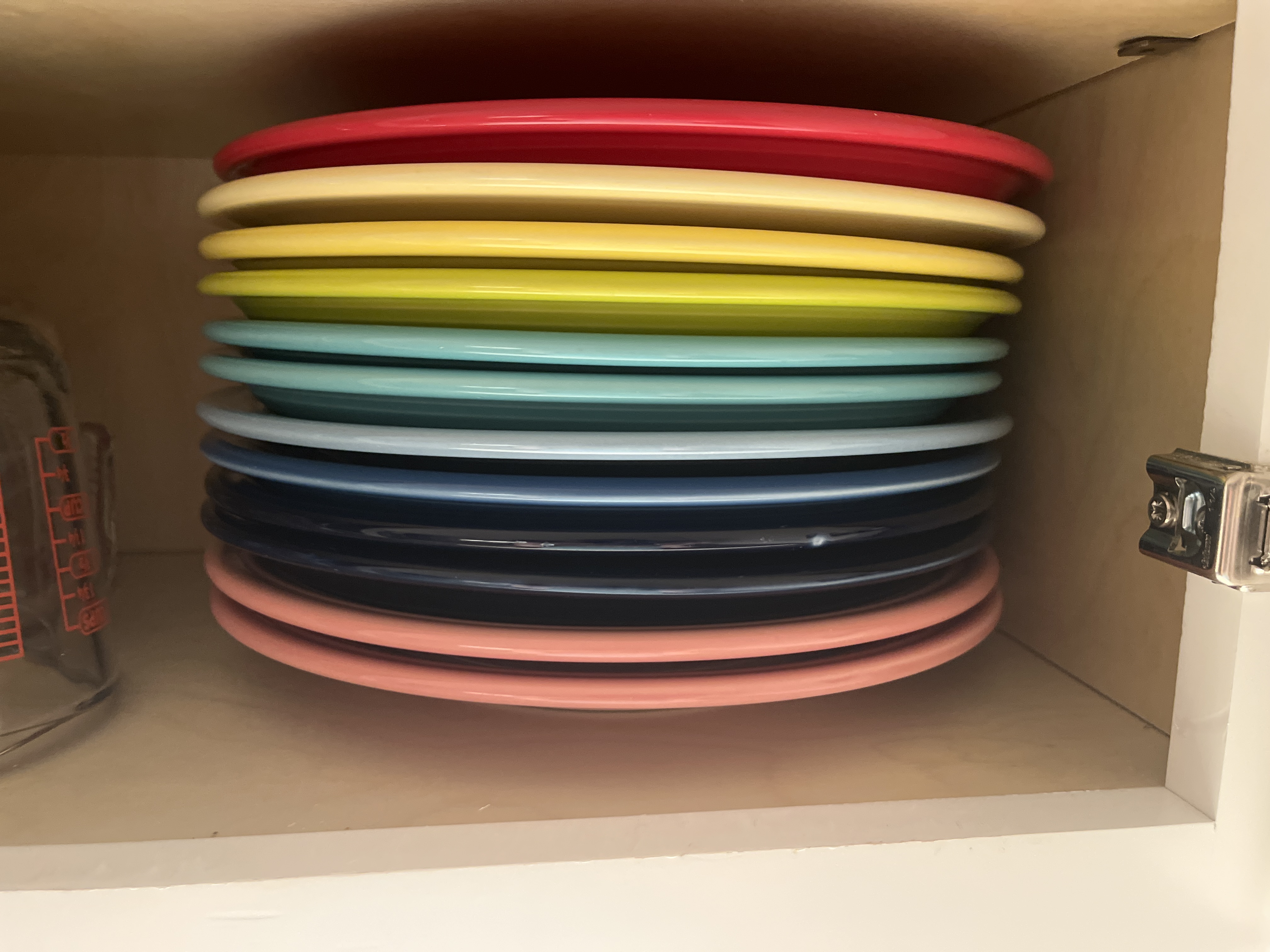 >>41424777usually i’d put the pink above the red (as you can see with the yellow and blue, i usually put the lighter shade of the same color above) but i put the plates at the bottom of the stack when they come out of the dishwasher so the same dishes don’t get used all the time while others collect dust