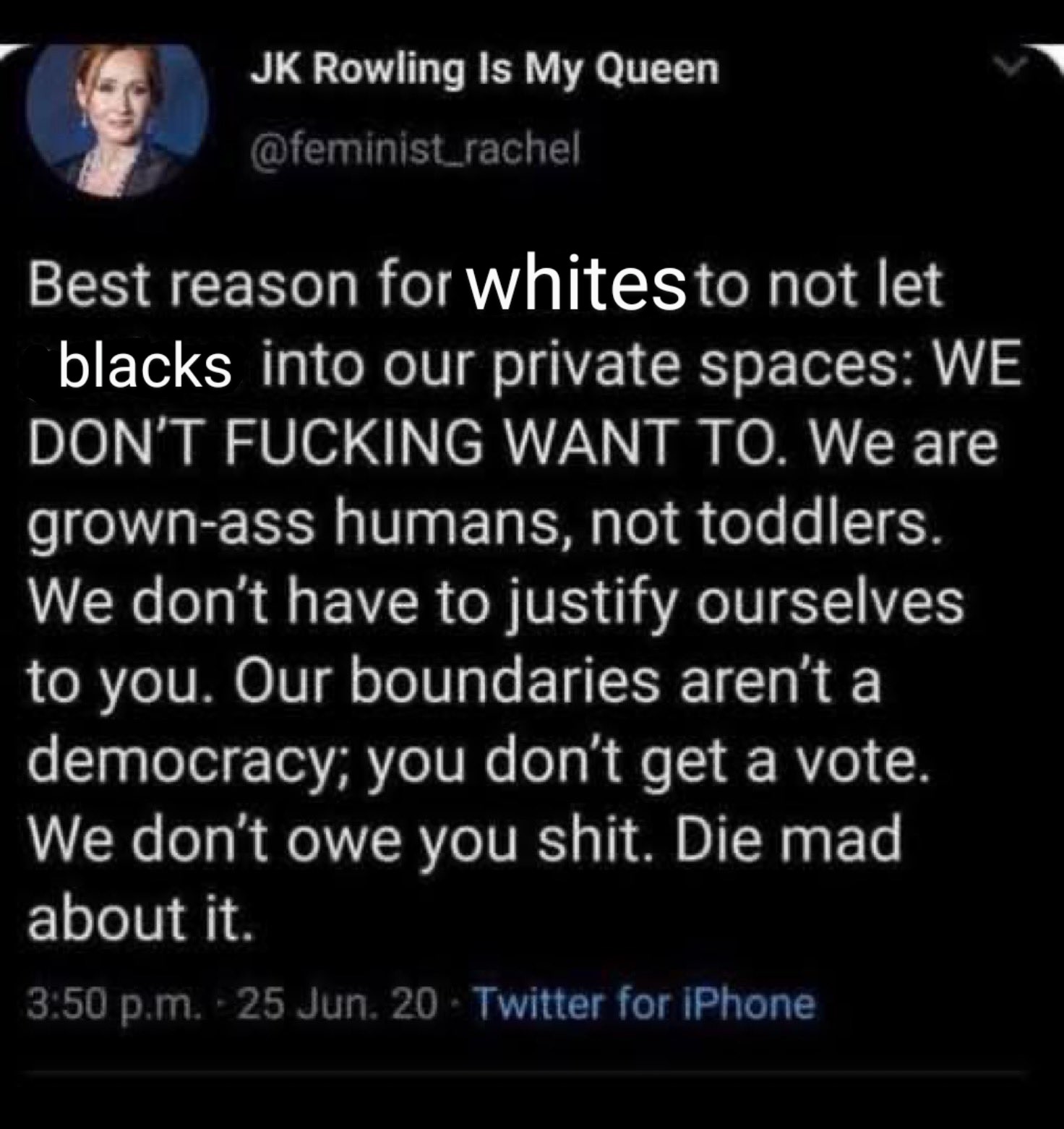 We don’t have to justify ourselves to you Our boundaries aren’t a democracy; you don’t get a vote We don’t owe you shit