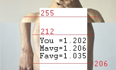 >>41503958You shoulders are angled, and the photo is also taken from too low, so it's not possible to get an accurate ratio from that photo.