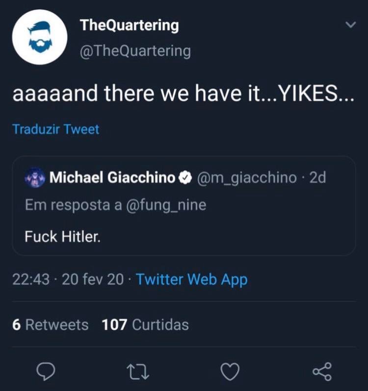 >>41512647most brain worms ive ever seen>NEVER been done by the LGBT communitydefending yourself from hate isn’t nazism lol. nazis created the “us vs them” to justify their genocide's>If Nazi's were "Nationalists", why did they feel it was appropriate to invade other countries? They were race-based Globalists, like BLM.blm isn’t race based or globalist, it’s a civil rights movement focused on ending police violence and systemic racism>Like when you kick people out of your cult because their opinions don't line up with yours?nice trolling, but having community boundaries ≠ running a death cult>Not a single "Institution" is immune to fraud and corruption. Why do you praise corruption?pointing out corruption isn’t anti pluralism, nazis banned unions, media, and opposition>Kinda like the camps and mass murder you have been going on about for years?talking about fascism isn’t fascism. the people warning about hate aren’t the ones spreading iti know our suicide rates are high but if youre lgbt why fight to sui your whole community? weird fetish?