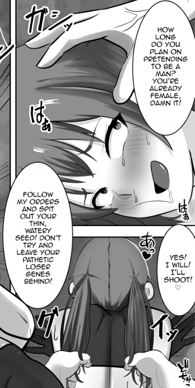>>41528960Imagine if I fucked you in your bedroom where your parents could hear, our mating sounds echoing throughout the house and shaking the walls with their intensity. Imagine if I put you on all fours and mounted you in front of a mirror so you can witness the boy getting fucked out of you and watch as the last hope for your bloodline drips impotently on to the floor from the pathetic thing between your legs while I'm reshaping your tight hole to my liking