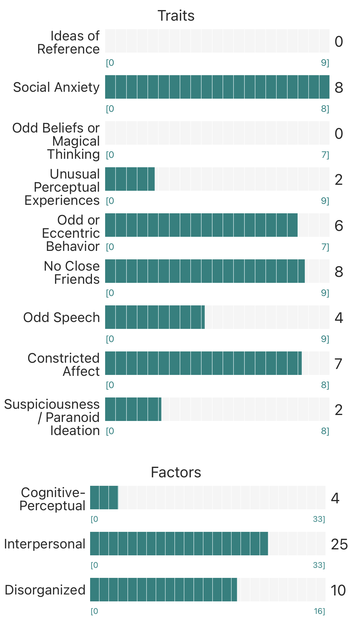 >>4156683419 y/o hrt@16 bi mtf. semipassoid at best twinkhon at worst. at least by board and my own extremely self critical standards. i’ll be a passoid after more effort and a few more years of hrt and surg. i have passed often irl and prob pass good enough to non brainwormed normal ppl but idk. im clockable in a pattern recognition wayTotal SPQ Score 57Ideas of Reference 9Social Anxiety 6Odd Beliefs or Magical Thinking 7Unusual Perceptual Experiences 9Odd or Eccentric Behavior 6No Close Friends 3Odd Speech 8Constricted Affect 2Suspiciousness / Paranoid Ideation 7FactorsCognitive-Perceptual 32Interpersonal 18Disorganized 14