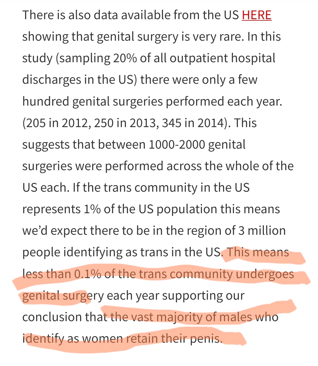>>41570759>>41570593>>41570585Dumb dumb dumb dumb dumb.100% = 110% = 0.11% = 0.010.01% = 0.0001>>41570264Their sampling method seems extremely retarded. It misses overseas surgery, and they're not mentioning which hospitals or clinics they're looking at.