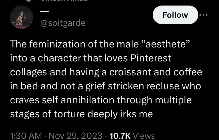 >androgynous>princely>gets ffs and becomes an ugly man anyways