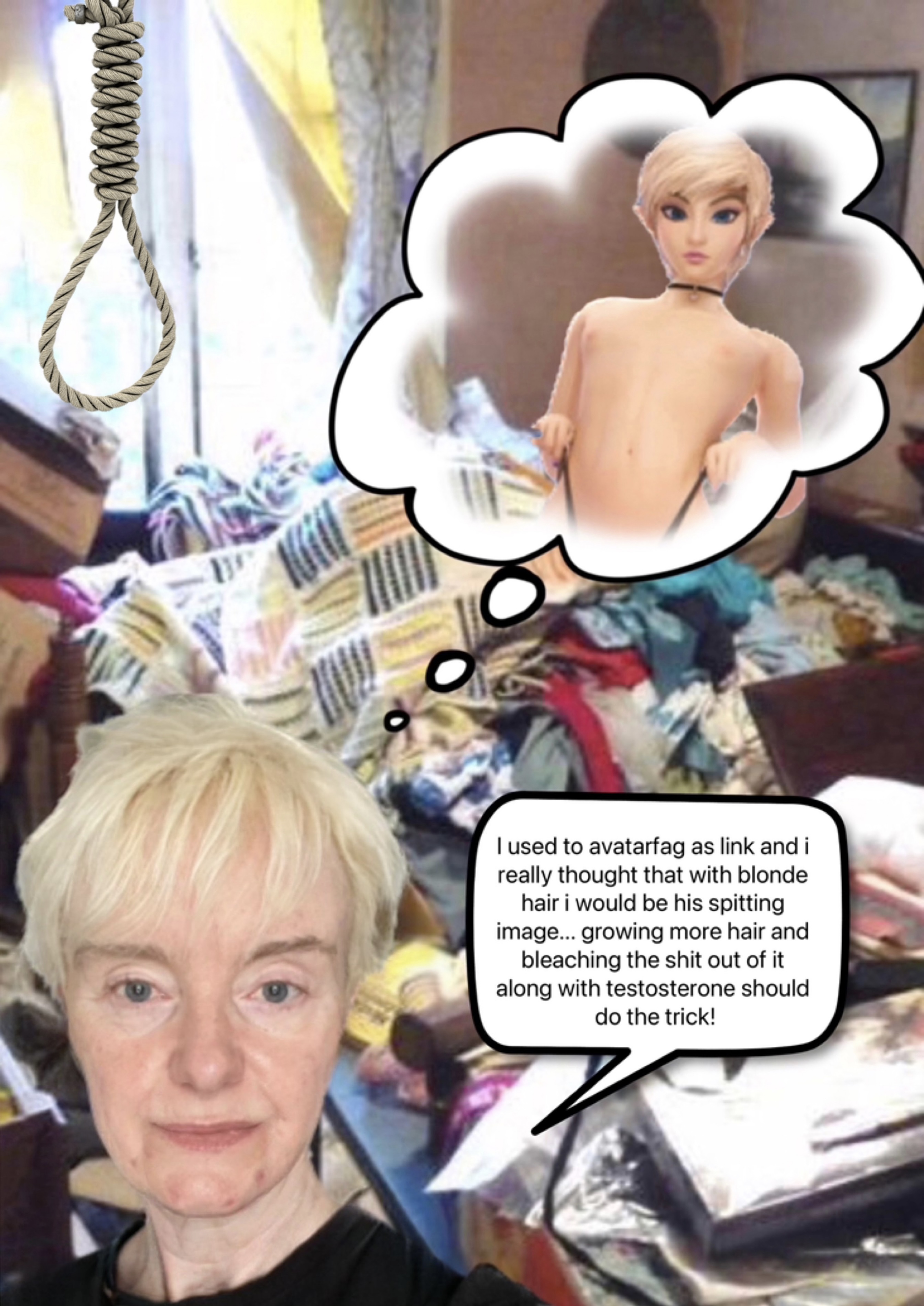 >>41860083>watch some random youtube video about scary topics>mentions that one sex cult that promised to pair people up with their soul mate>categorized people into "divine feminine" and "divine masculine">apparently there were instances of coerced transition from the cult leaders in couples with no clear masculine and feminine person>they told some followers they needed to transition so they could be fully masculine or fully feminine and fulfill their divine role>would threaten and bully them until they went by a new name and started taking hormoneswhat the fuck man, where is my pervert cult leader couple who pressures me into transition and makes me send dick pics to make sure it's growing and i'm really doing the injections. i'm already 3+ years into T but i still want it. maaan, if i had money i'd join a pervert tranny cult.