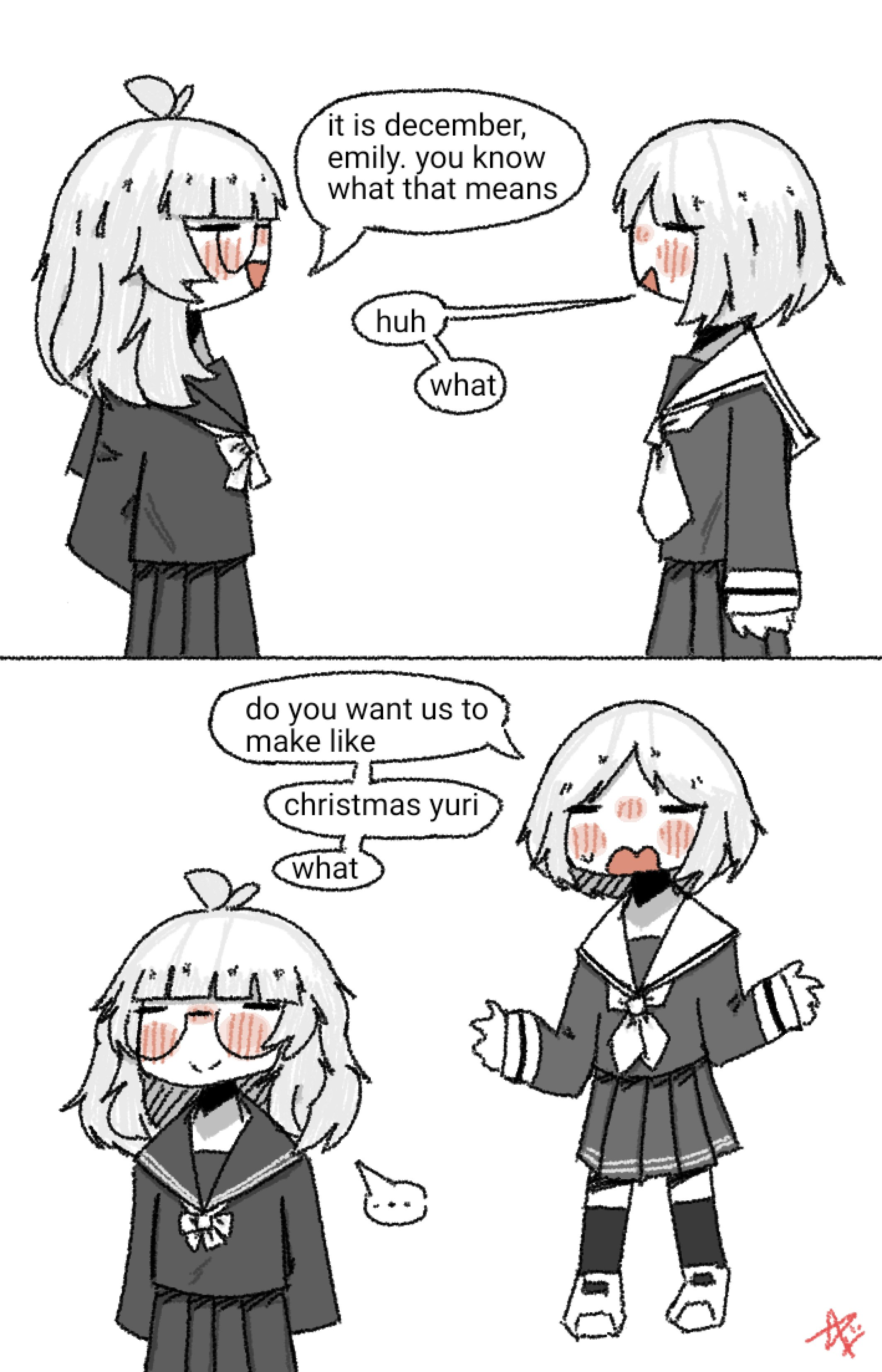 >>41975400>What images make you go “us” to your gf?picrel>What Christmas traditions do you uphold or would like to?I'm so burnt out currently I honestly feel like skipping christmas this year. Might put up some decorations idk, we might have a friend christmas but I don't have much energy to prepare...>Thoughts on AI?not a fan but I made deepseek write me a yaoi fanfic once