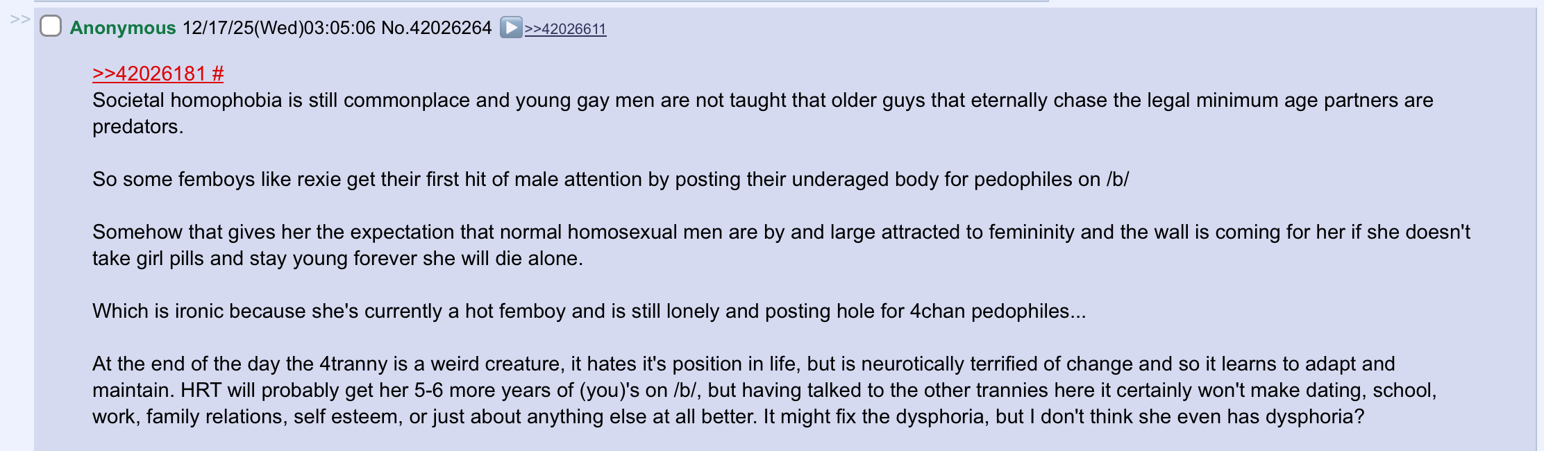 >>42032276im in a different situation to him tho, i dont live in a conservative shithole and I have friends who are comfortable with it>>42032279u guys treat me like shit so it’s my right to come here and complain