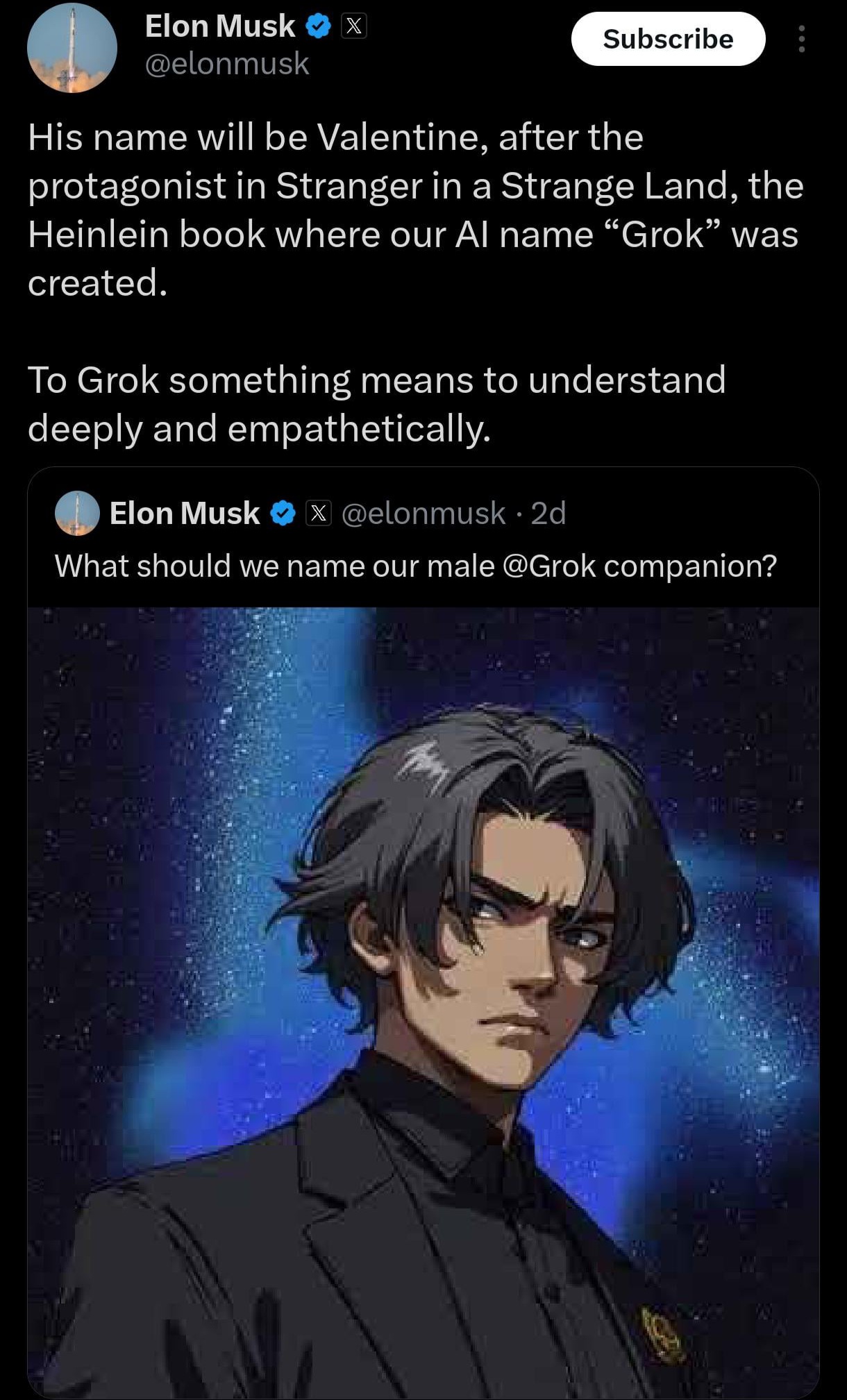 Elon made male grok but he is quite swarthy compared to female grok, are you dating male grok?