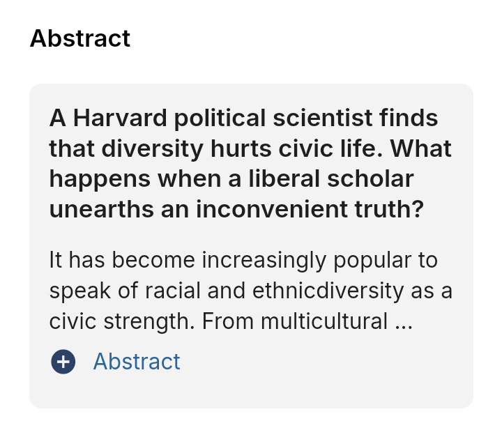 >>42044935Immigration causes inflation, housing shortages, lower wages, overpopulation, and in the USA (country with the most immigrants) causes drug epidemics, car crash fatalities, and a large number of negative outcomes, not to mention fractured trust in government and communities, less participation in communities as evidenced in Harvard studies. There really are no benefits.
