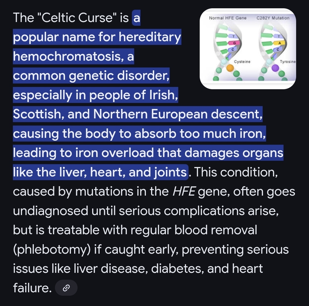 >>42062138I have hereditary hemochromatosis which requires blood letting and is known as the celtic curse because of its prevalence in people with celtic ancestry uwu