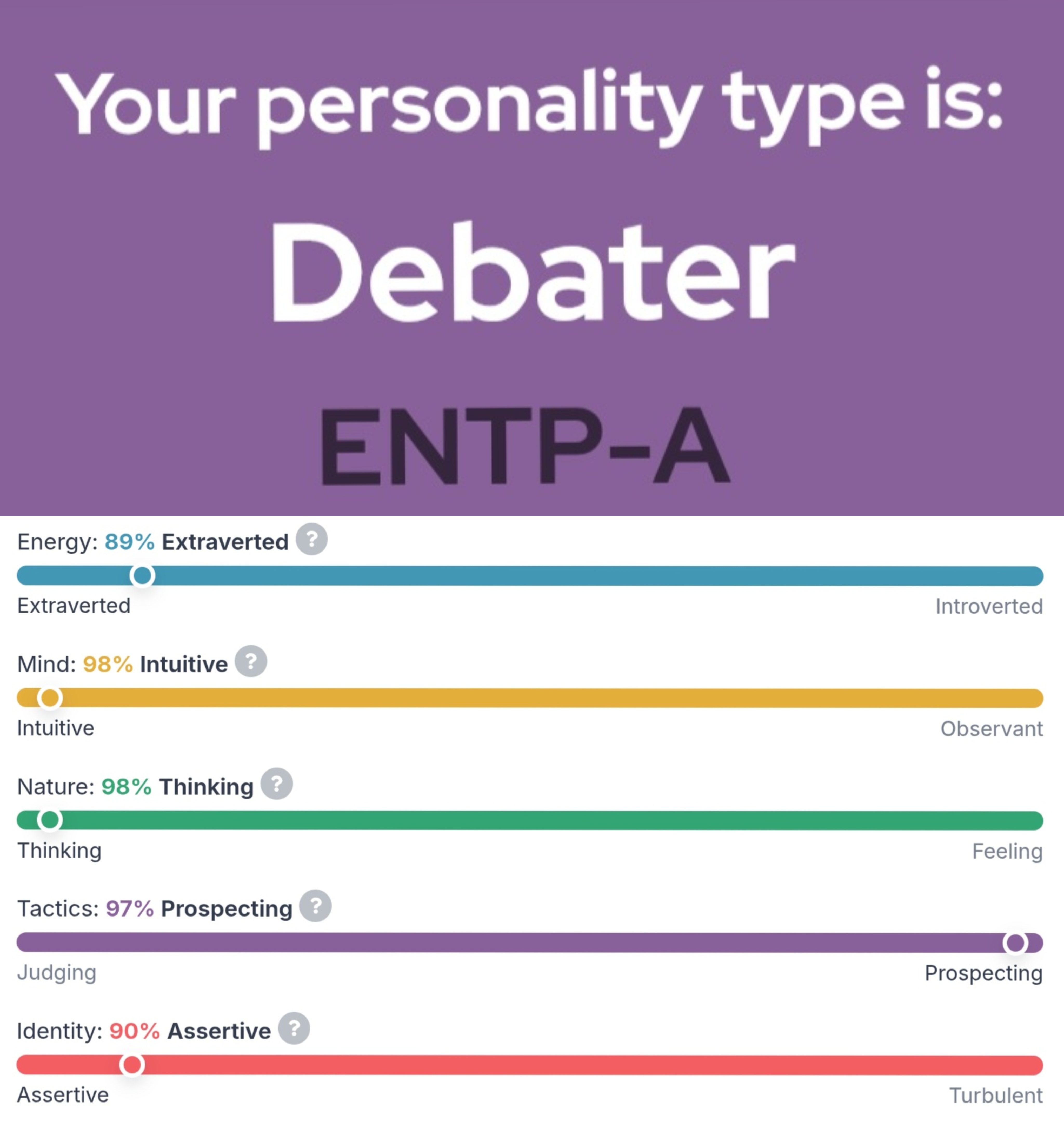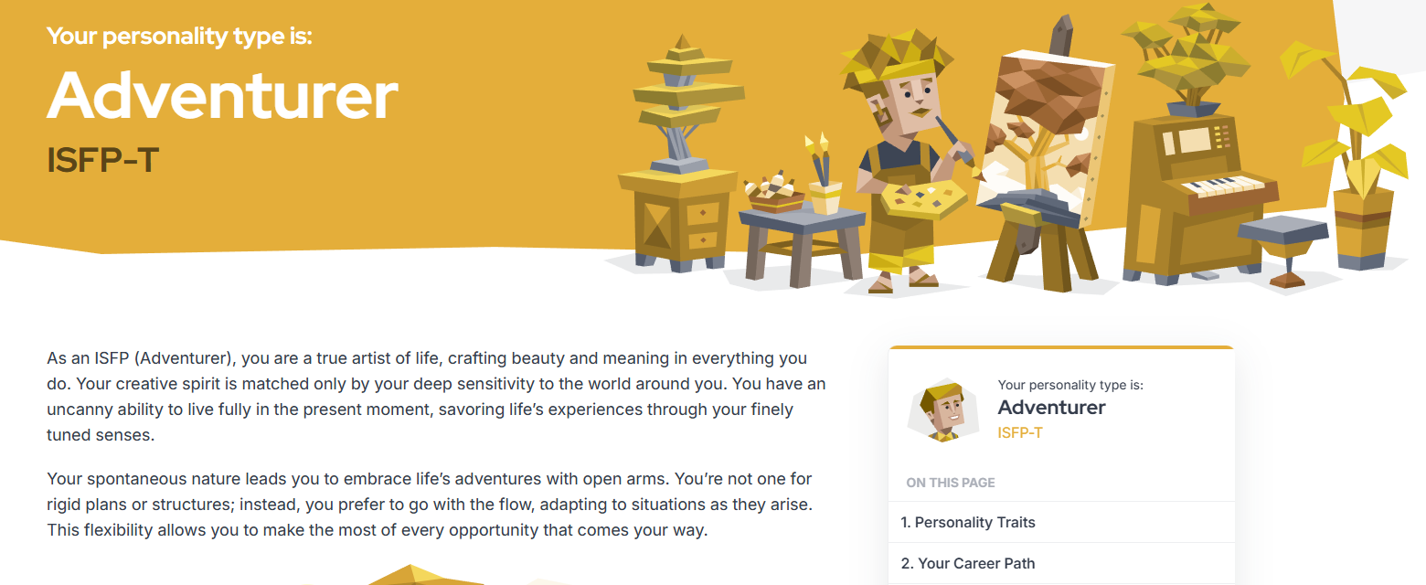 >>42177156I got INTP shortly before I had a mental breakdown late in highschool and never again, so I assume it's not a great result