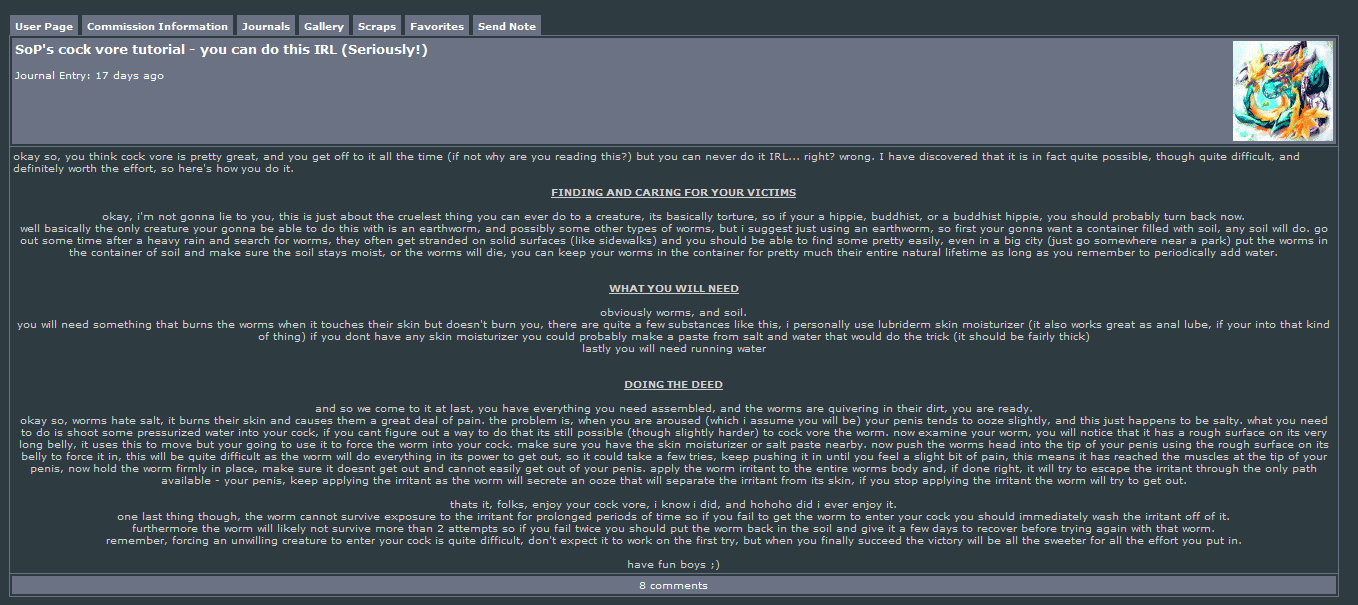 >>42190668I actually found the narration, it's just in flash form. Here you go. Rest in peace /f/https://eye.swfchan.com/flash.asp?id=94378&n=worm+cock+vore+-+dramatic+reading+how+to.swf