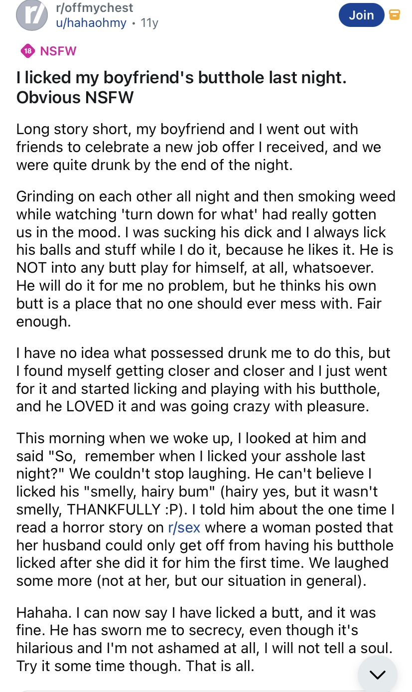 >>42260373Women are really not into men’s assholes. Just because a very small minority are, and even most of those are sex workers, doesn’t mean anything. This is all cope.