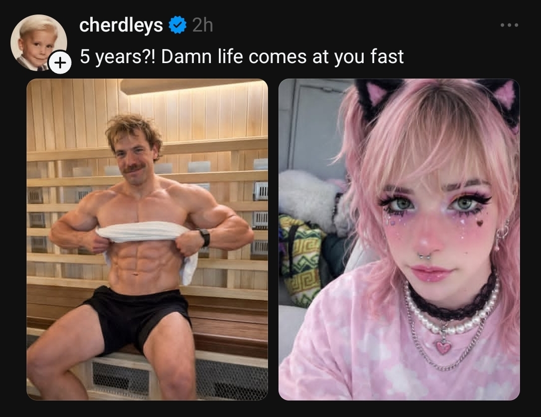 >>42272200I'm closest to that, but bigger boobs and smaller junk.