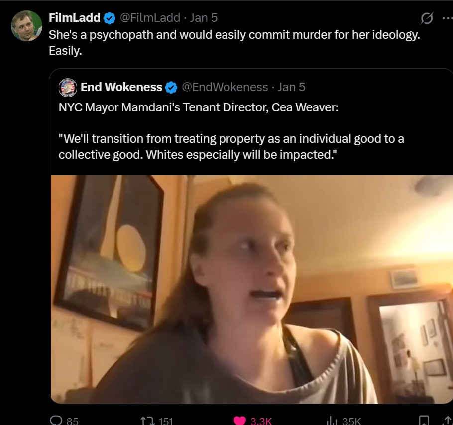 >>42278215>not a thing - you are delusionalWhat else do you call your politicians and newspapers talking about ending whiteness and the stuff that's going on in mamdani's admin?>lmao terrrorismthe killer of kirk wasn't a terrorist? do you even know what the word means?>the ag in virginia said no such thing!It's on record. No one's denying it. Stop lying.