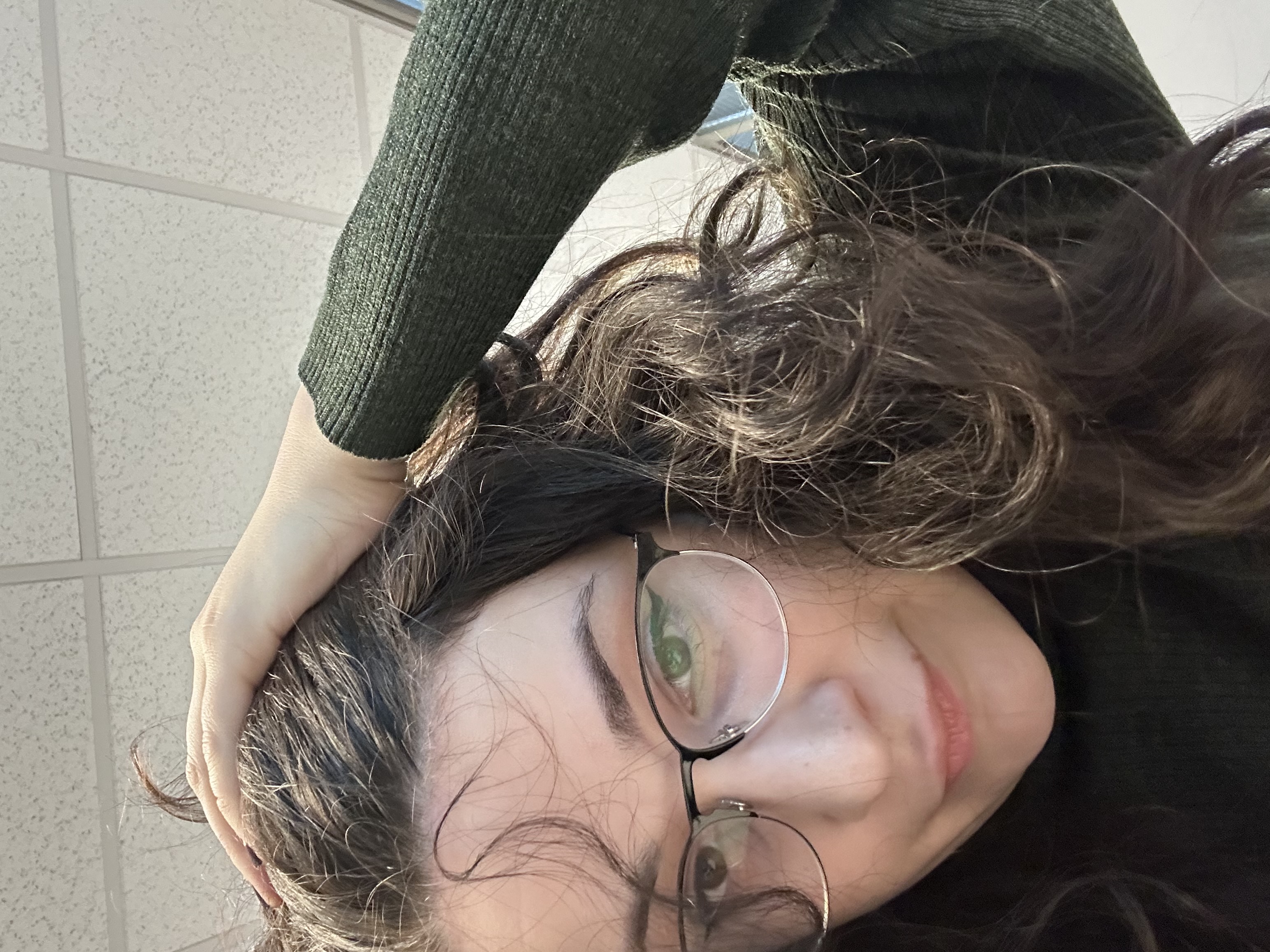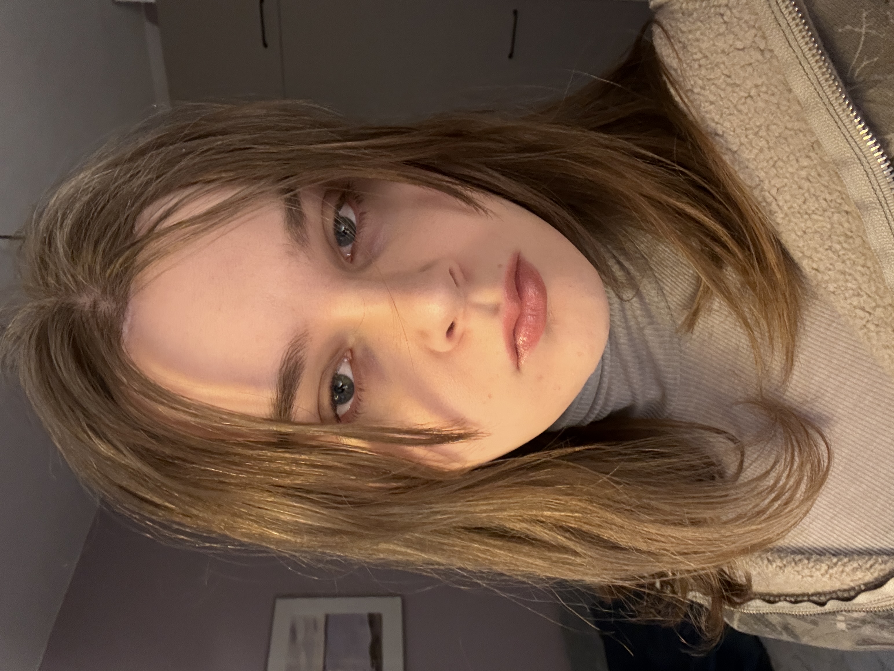 Me laying in bed in a baggy shirt w no makeup or glasses. I think it’s not that bad desu