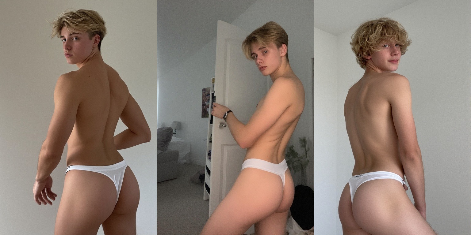 >>42284561blonde male around 18 years old, swedish, youthful, slim physique, in white thong, butt showingit's just perfection